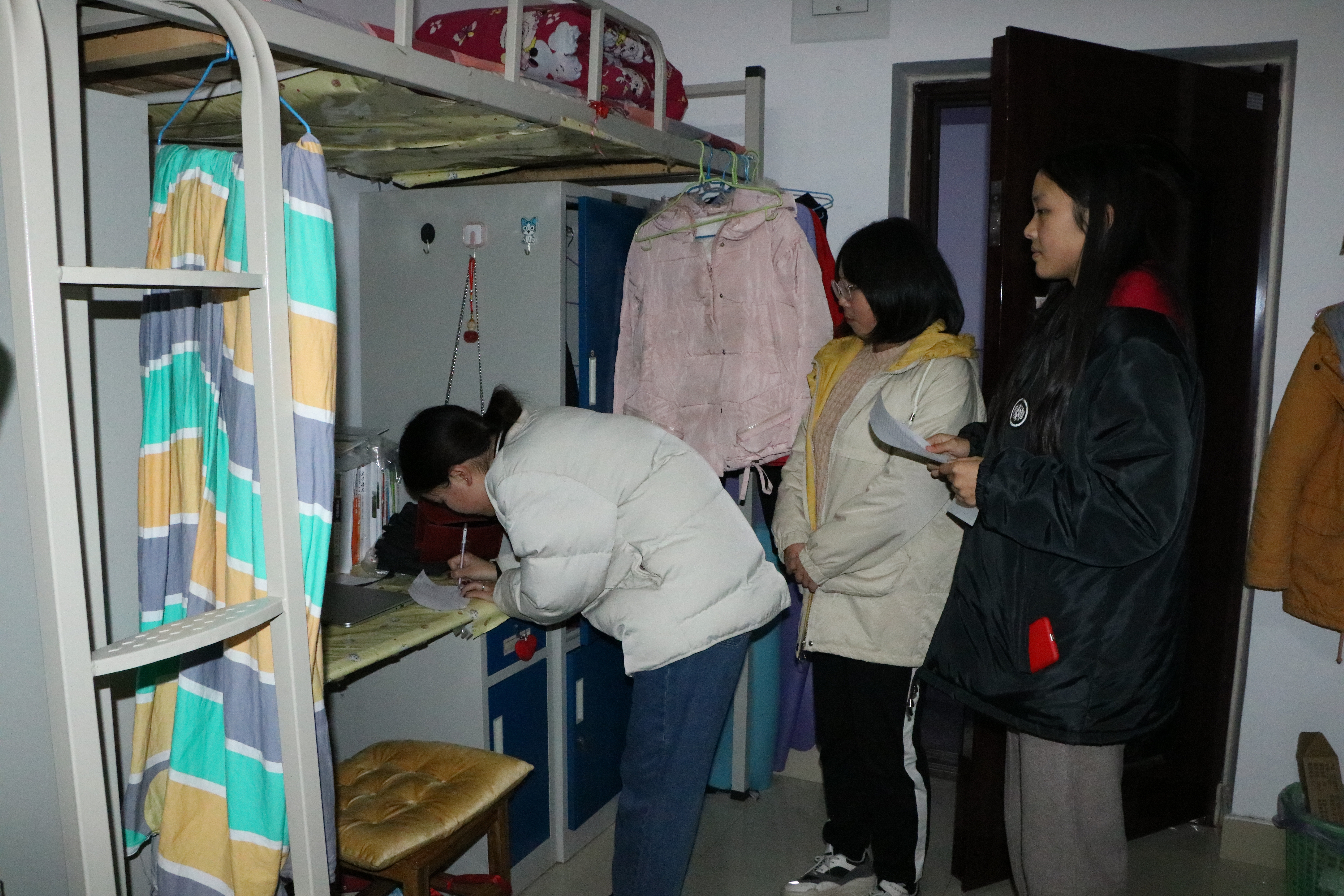 2018级宿舍424、431、434、503锁门,438无人;