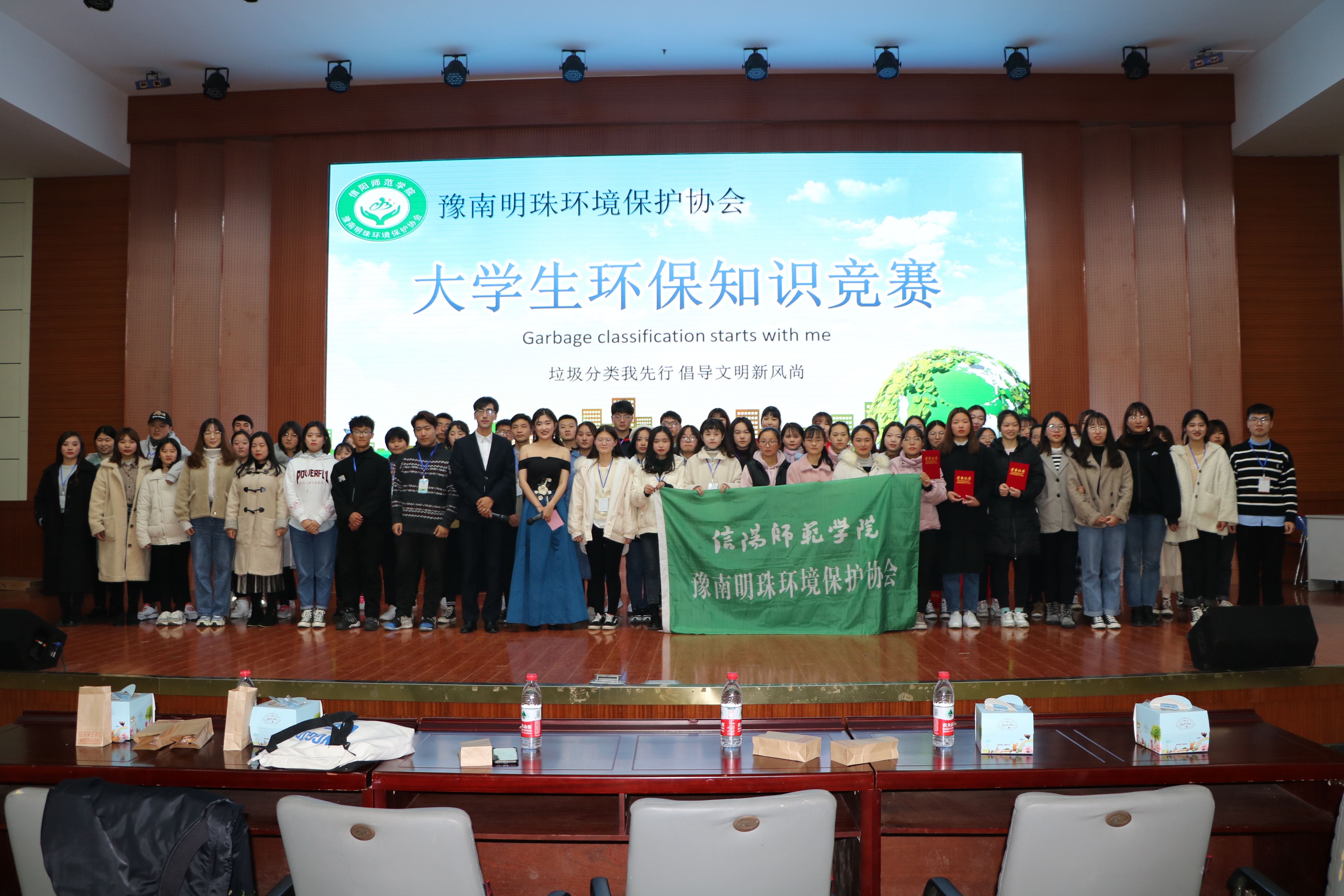 为响应习近平总书记对于垃圾分类工作的重要指示,呼吁更多学生关注和参与生态环境保护,12月7日晚,由信阳师范学院后勤管理处、ok138cn太阳集团529分团委主办,豫南明珠环境保护协会承办的以“垃圾分类我先行,倡导文明新风尚”为主题的大学生环保知识竞赛决赛于逸夫楼报告厅成功举行。信阳师范学院后勤管理处龚关老师,ok138cn太阳集团529豫南明珠环境保护协会指导老师胡春湘、我院学生会主席团、各兄弟社团以及400余名学生共同参与本次活动。比赛由王誉博和赵万里主持。