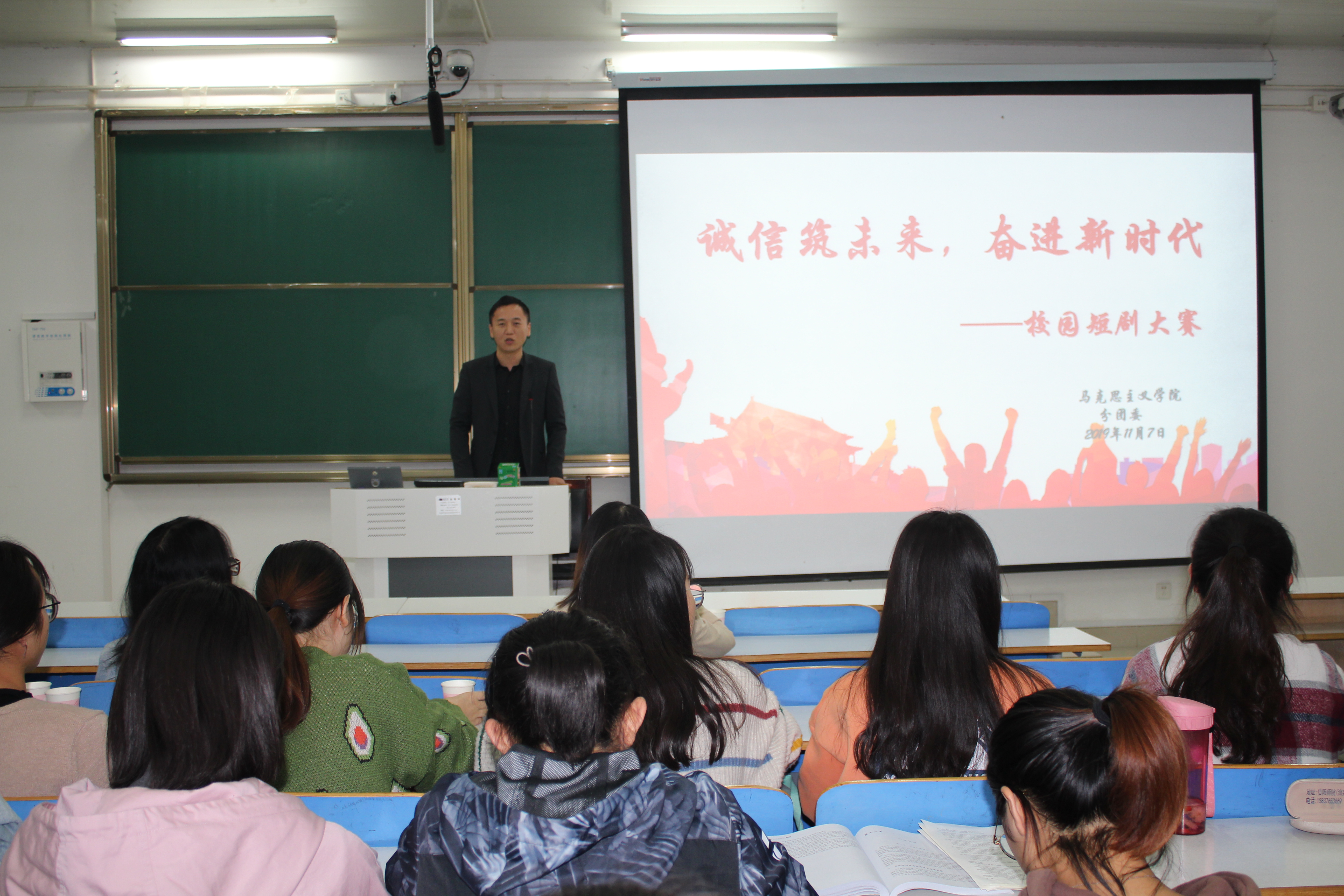 11月7日下午,ok138cn太阳集团529在社科楼514教室举办了“诚信筑未来,奋进新时代”校园短剧大赛。我院团委书记曹栋,团委老师曹菁菁、陶青青,学生会主席团成员出席比赛并担任评委。比赛由学贷部魏子航主持。