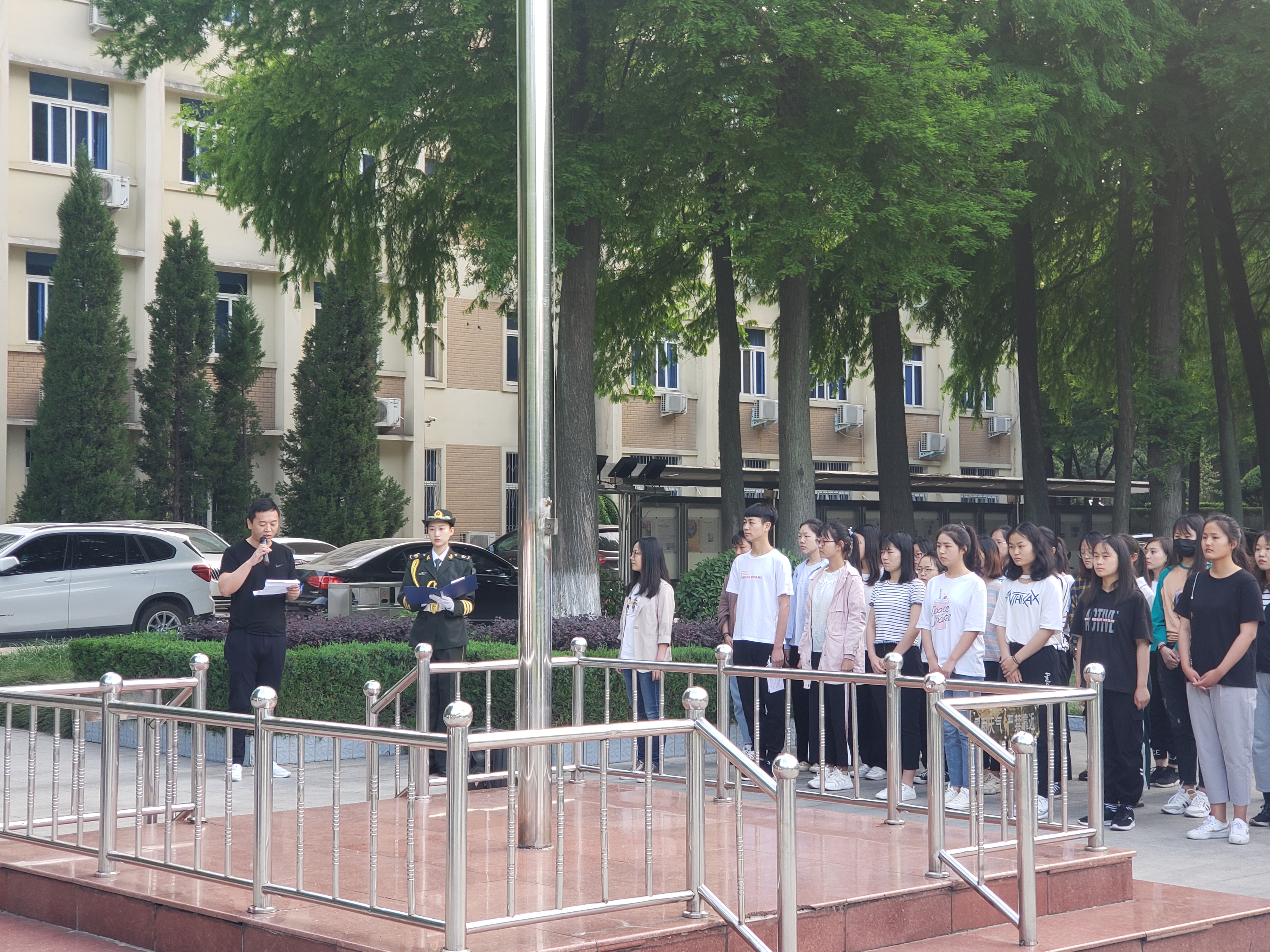 5月20日清晨,ok138cn太阳集团529于行政楼隆重举行升旗仪式。我院团委书记曹栋,专职辅导员曹菁菁,我校国旗护卫队和2018级全体学生参加本次升旗仪式。仪式由国旗护卫队莫铭非主持。