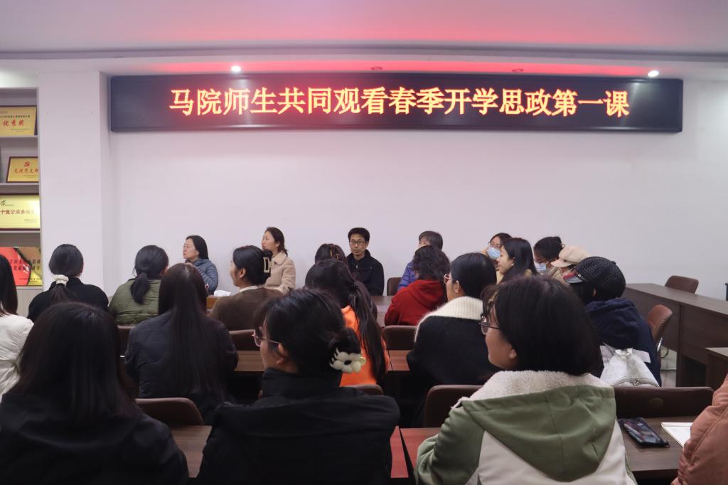 为学习贯彻习近平文化思想和习近平总书记关于思政课建设的重要论述,统筹推进全省大中小学思政课一体化建设和文化育人工作,引导广大师生深化对“两个确立”决定性意义的认识,省委教育工委、省教育厅于3月9日晚上开展2024年河南省春季开学思政第一课暨大中小学思政课集体备课活动。ok138cn太阳集团529组织学院师生共同观看了直播。