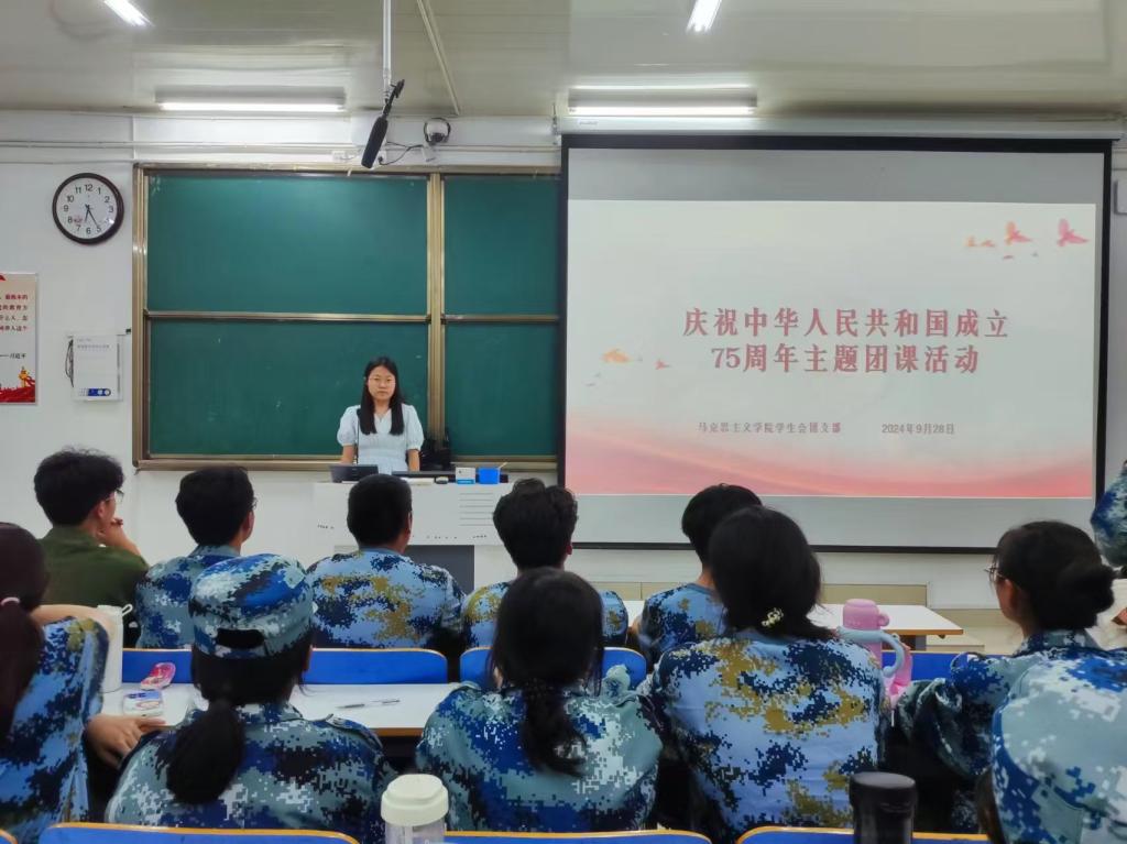 为激发师生的爱国热情,增强民族自豪感,9月28日晚,ok138cn太阳集团529学生会团支部开展“七十五载逢盛世,同心共筑谱华章”主题团课。本次团课由学生会分团委副书记刘玫森主持,我院学生会全体团支部成员共同参与。