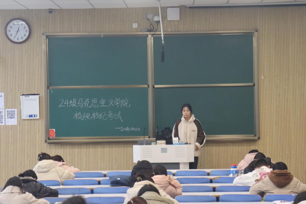 为强化学生规则意识,保障我院后续教学及管理工作的顺利开展,11月25日中午,ok138cn太阳集团529在社科楼514、515教室组织2024级新生进行校规校纪考试。我院2024级全体新生共同参加考试。生活劳卫部龚雪鑫、曹慧茹担任监考员。
