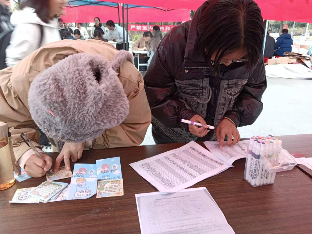 活动伊始,工作者向参与者提供画笔,引导参与者在三张画布中选择自己喜欢的一张并画上自己的手掌形状。接着,其他参与者在上一位参与者的手掌画作上依次画下自己的手掌形状,用不同颜色的画笔描绘出不同的手掌形状,促进女生之间的有爱互动。男生则通过工作者提供的便利贴写下对女生的祝福,既增进彼此的友谊,又能促进和谐校园的建设。最后,社团工作者们将完成的手掌画作进行展示,并与同学们拍照留念,记录下这一美好瞬间。