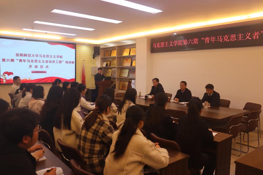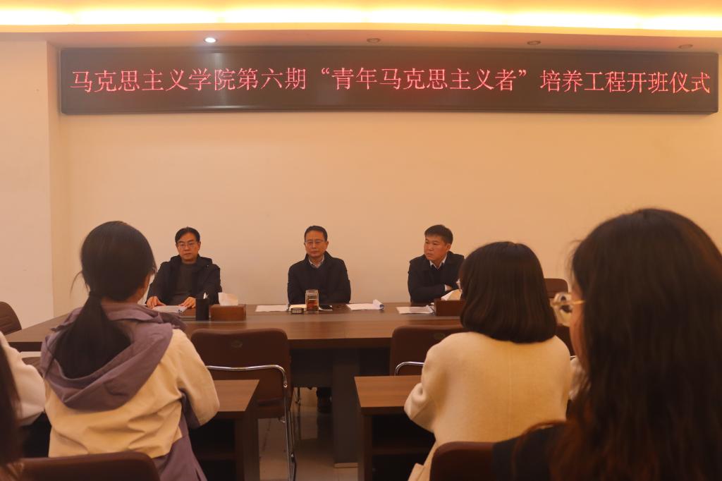 开班仪式上,唐国战介绍了“青年马克思主义者”培养工程的指导思想、培养目标、培养方案等主要内容,并鼓励全体学员坚定马克思主义信仰,求真学问,练真本领,扎根基层,认真参加实践课题,努力提高自身思想素质,成为德才兼备的新时代人才。随后,王超宣读了第六期“青年马克思主义者”培养工程学员名单。第五期青马学员代表张诗晨和第六期青马学员代表王譯慧依次上台发言。她们表示,将珍惜学院青马工程提供的学习实践平台,持续提升理论素养,锻炼意志品格,立志成为堪当大任的青年马克思主义者。最后,唐子浩宣布第六期“青年马克思主义者”培训班正式开班。