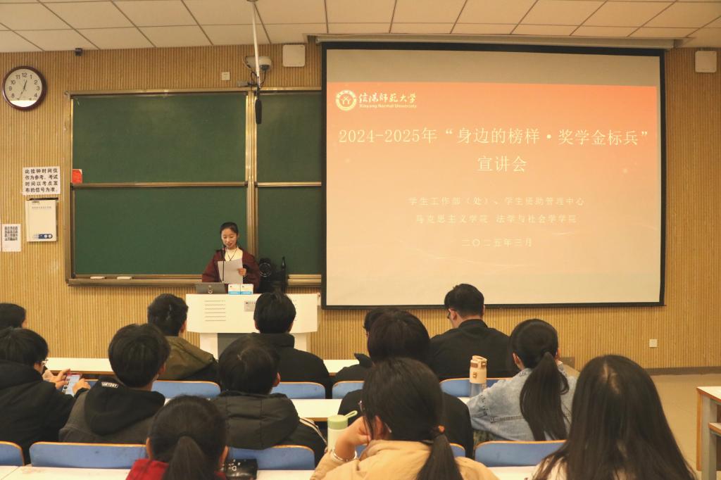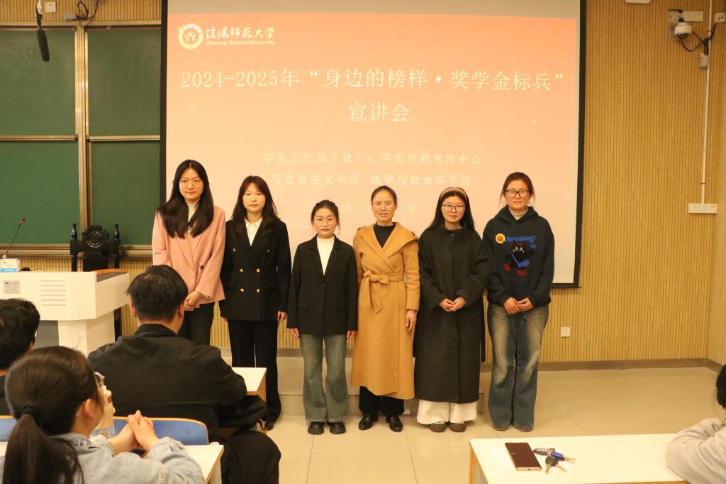 为充分发挥优秀学生的示范引领作用,激发广大学子的学习热情与进取精神,3月18日中午,我院联合法学与社会学学院、学生资助管理中心和学生工作部于社科楼515教室开展“身边的榜样·奖学金标兵”宣讲会。