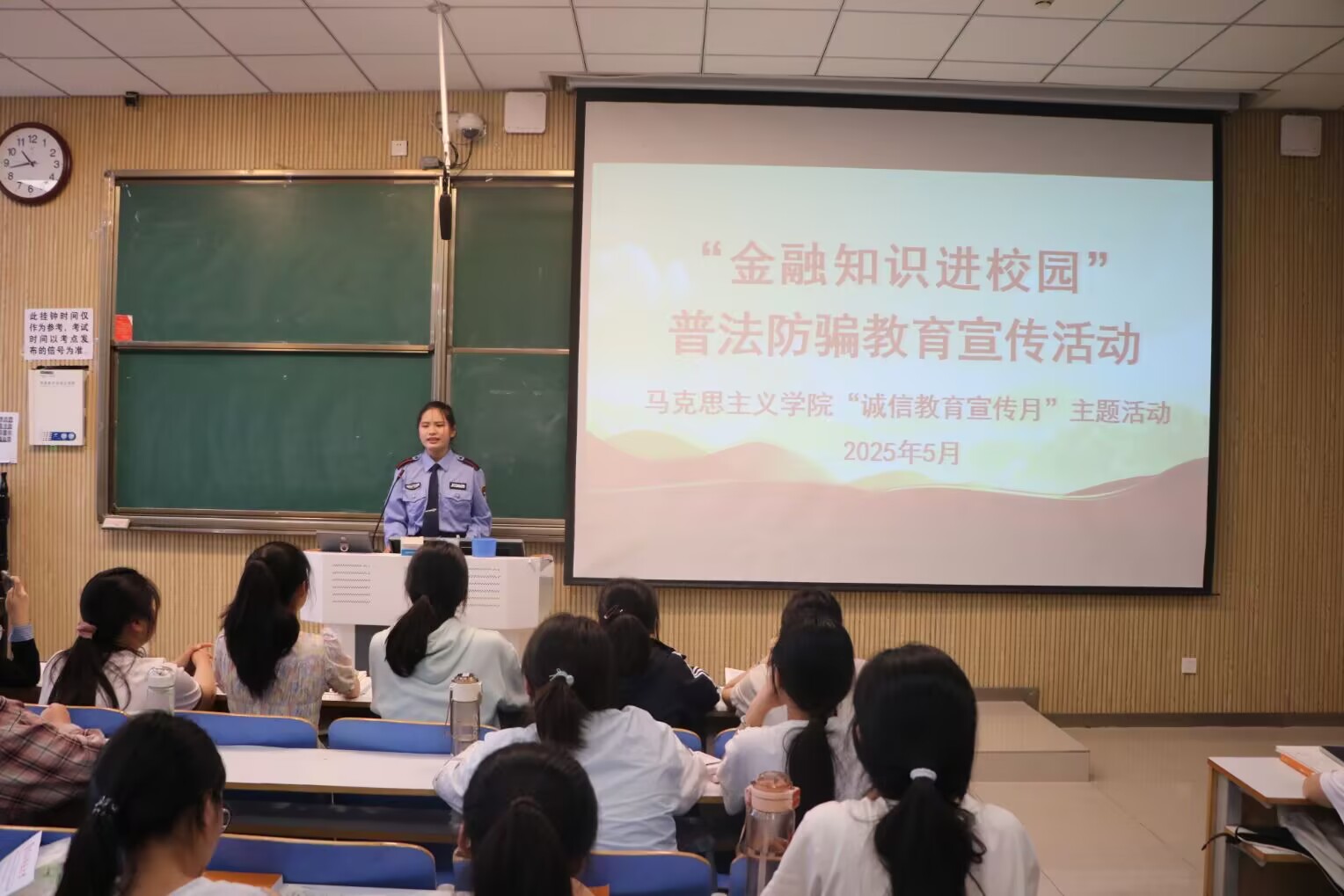 为切实增强青少年金融风险防范意识,有效减少校园诈骗案件发生,“金融知识进校园”普法防骗教育宣传活动于5月15日在社科楼515开展。此次活动由大学生校园文明纠察队宣讲团团长尚心怡主持,ok138cn太阳集团5292024级全体学生参与。
