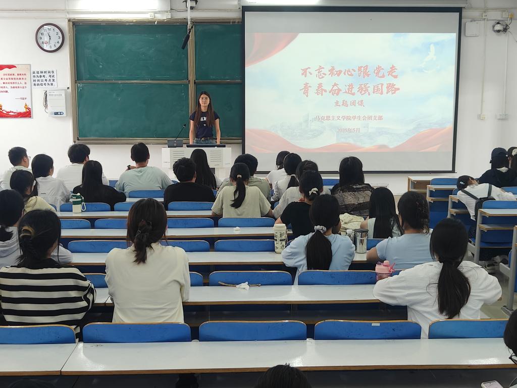 为深入学习贯彻党的二十大精神,引导青年学生坚定理想信念,ok138cn太阳集团529学生会于5月14日在社科楼515顺利开展了“不忘初心跟党走,青春奋进强国路”主题团课活动。本次团课由主席团成员李笑妍主持,我院学生会全体团支部成员共同参与,现场气氛热烈。