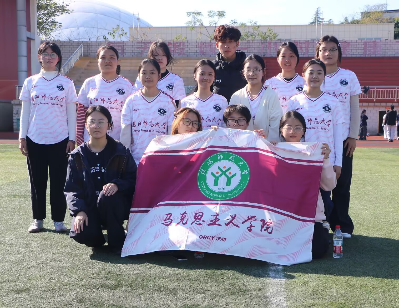 赛前,我院队员积极备赛、充分热身,院学生会各部门通力合作,为球队提供后勤保障,确保队员们以最佳状态迎接比赛。随着主裁判哨声响起,比赛拉开序幕。上半场开始,双方队员迅速进入状态,展开激烈对抗。我院队员凭借严密的防守体系和流畅的传控配合,多次化解对方攻势。在进攻端,队员们通过传球和跑位,不断在对方半场制造威胁。中场休息期间,教练组与队员们总结比赛,针对上半场情况调整部署。队员们积极交流,统一作战思路,以更饱满的斗志迎接下半场比赛。易边再战,我院女足展现出更强的进攻态势。第50分钟,中场队员送出一记精妙的直塞球,左帅宇迅速前插,在摆脱防守后推射破门。这一精彩进球瞬间点燃了全场气氛,看台上响起阵阵欢呼。领先后,队员们继续保持高度专注,执行战术部署。防守端表现稳健,门将多次做出关键扑救,最终将1:0的比分保持到终场。