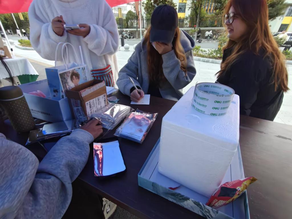 活动当天,心语广场洋溢着温馨与期待。参与者手持精心制作的盲盒如约而至,盲盒内装书籍、手写信、文创小物、文具等礼物,附有手写寄语,每一份都承载着制作者的巧思与善意。工作人员有序核对参与信息、收纳盲盒并贴上编号,现场井然有序。在盲盒交换环节,参与者通过抽签随机领取盲盒,拆开时的惊喜与感动溢于言表。许多同学现场拍照记录开盲盒的瞬间,并在活动群分享感受:“收到的手写信里写着‘愿你永远保持热爱’,瞬间被治愈了!”“盲盒里的小书签太精致了,能感受到对方的用心。”