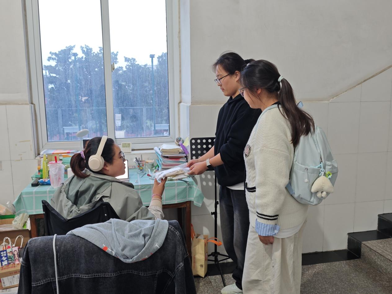 经过有序开展,义卖活动圆满落下帷幕。本次活动的组织者马院综联络处,将义卖所得精心筹备为 “研途暖心礼”。未来天气渐寒,工作人员前往学校社科楼、人文楼、教九楼等备考集中区域,为正在紧张冲刺的考研学姐学长们送上保暖手套,用实际行动为他们的备考之路增添温暖与力量。