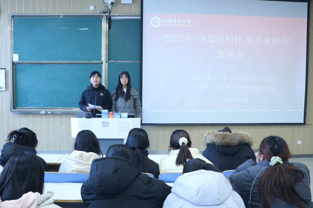 为充分发挥优秀学生的示范引领作用,营造崇尚先进、学习榜样的良好氛围,12月18日中午,我院联合学生工作部、学生资助管理中心及法学与社会学学院于社科楼515教室举办“身边的榜样·奖学金标兵”宣讲会。