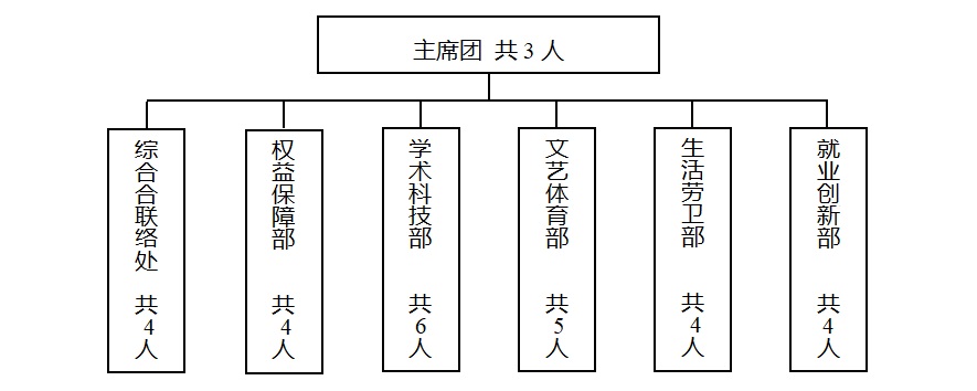 第十四条学生会主席团是本会日常工作的领导机构,由学生代表大会选举产生,主席团由不超过3人组成,探索实行轮值制度,设有执行主席1人,以学期为轮值周期。主席团集体负责本会的日常工作和重大事项,并向学生代表大会负责并报告工作。