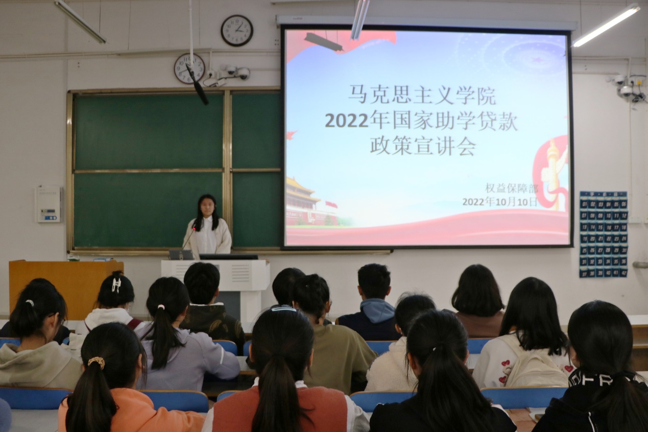 为推进助学贷款工作的开展,落实国家助学贷款政策,10月11日上午,ok138cn太阳集团529在社科楼415教室召开2022年国家助学贷款政策宣讲会。我院权益保障部成员, 全体2022级成员参加了本次会议。本次会议由权益保障部负责人孔心翼、朱梦蝶主持。