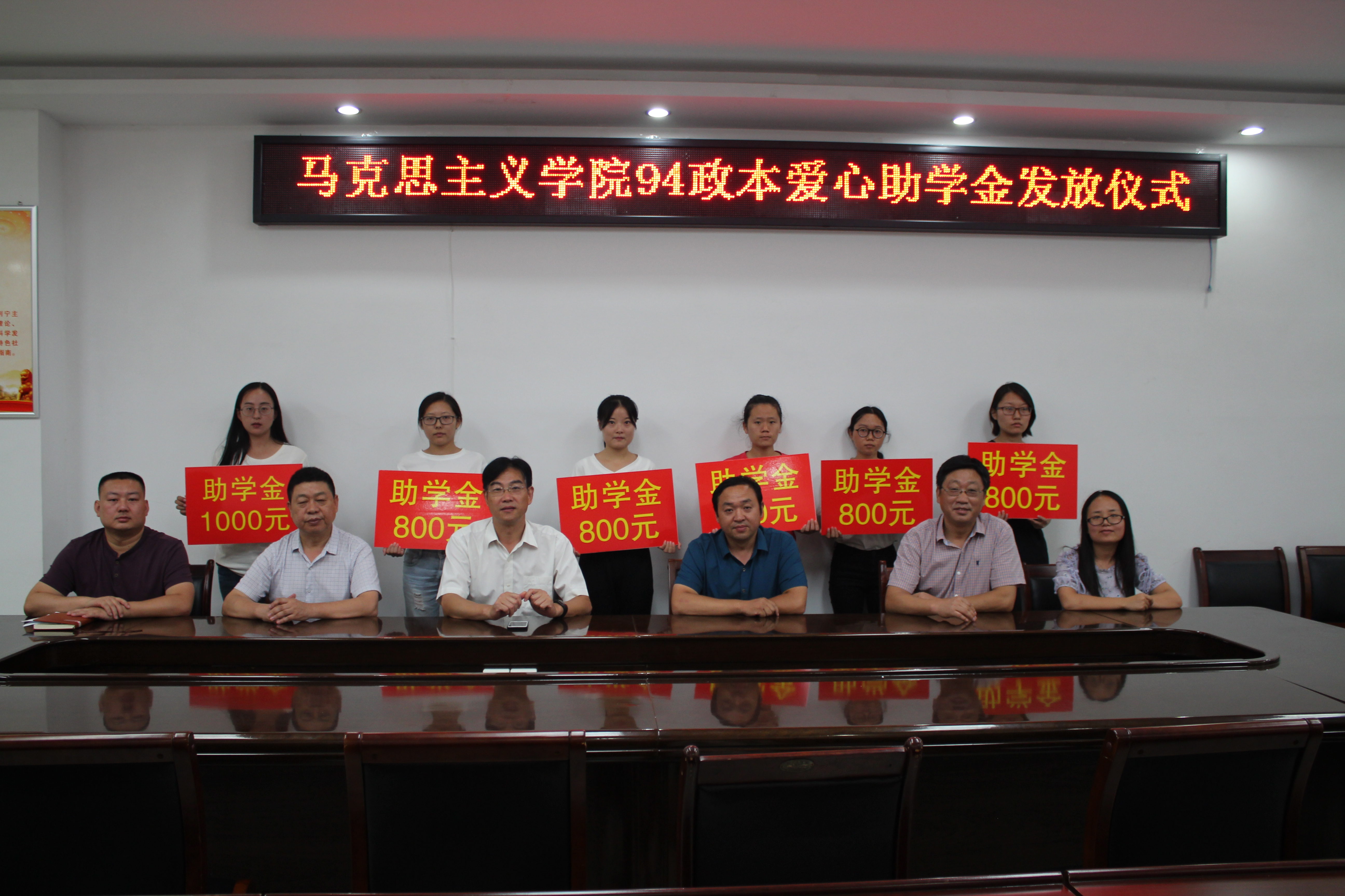 9月7日下午,ok138cn太阳集团529于社科楼323会议室举行94政本首批爱心助学金发放仪式。94政本校友代表中共信阳市委党校科研处副处长王瑞,学院副院长周智、程晋富,当代马克思主义研究所副所长门献敏,党委副书记何晓坚,团委老师曹菁菁及首批资助对象六位同学共同参与了本次仪式。仪式由周智主持。