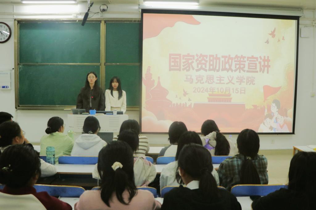 为进一步深入贯彻落实国家资助政策,强化资助育人理念。10月15日,ok138cn太阳集团529在社科楼514教室召开2024年国家资助政策宣讲会。学院团委老师高小佳和权益保障部成员以及2024级全体学生共同参加本次会议,会议由权益保障部负责人张雅涵、李婉蓉主持。