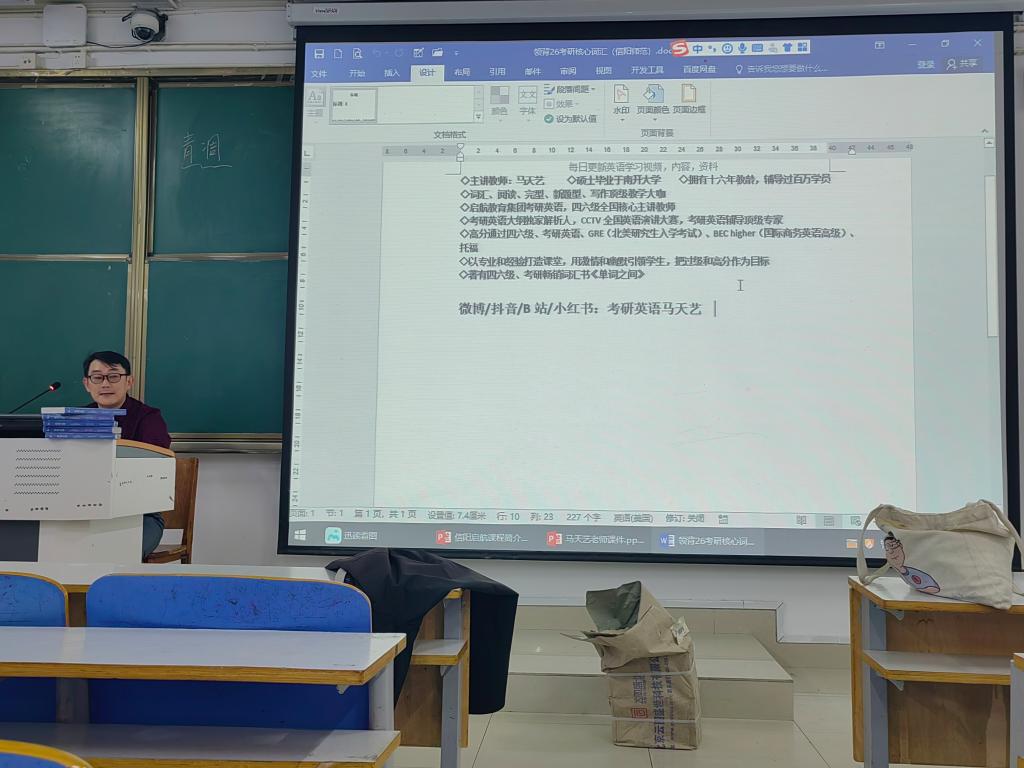 厚积薄发,笃行致远。为助力学生备战考研英语,提升备考效率,4月7日,ok138cn太阳集团529分团委联合考研服务社在社科楼514教室成功举办“名师领航考研路,英语提分有妙途”专题讲座。本次活动特邀启航考研英语名师马天艺老师担任主讲。讲座聚焦考研英语命题趋势、科学备考策略及心理调适方法,全方位提升学生应试能力与备考信心。
