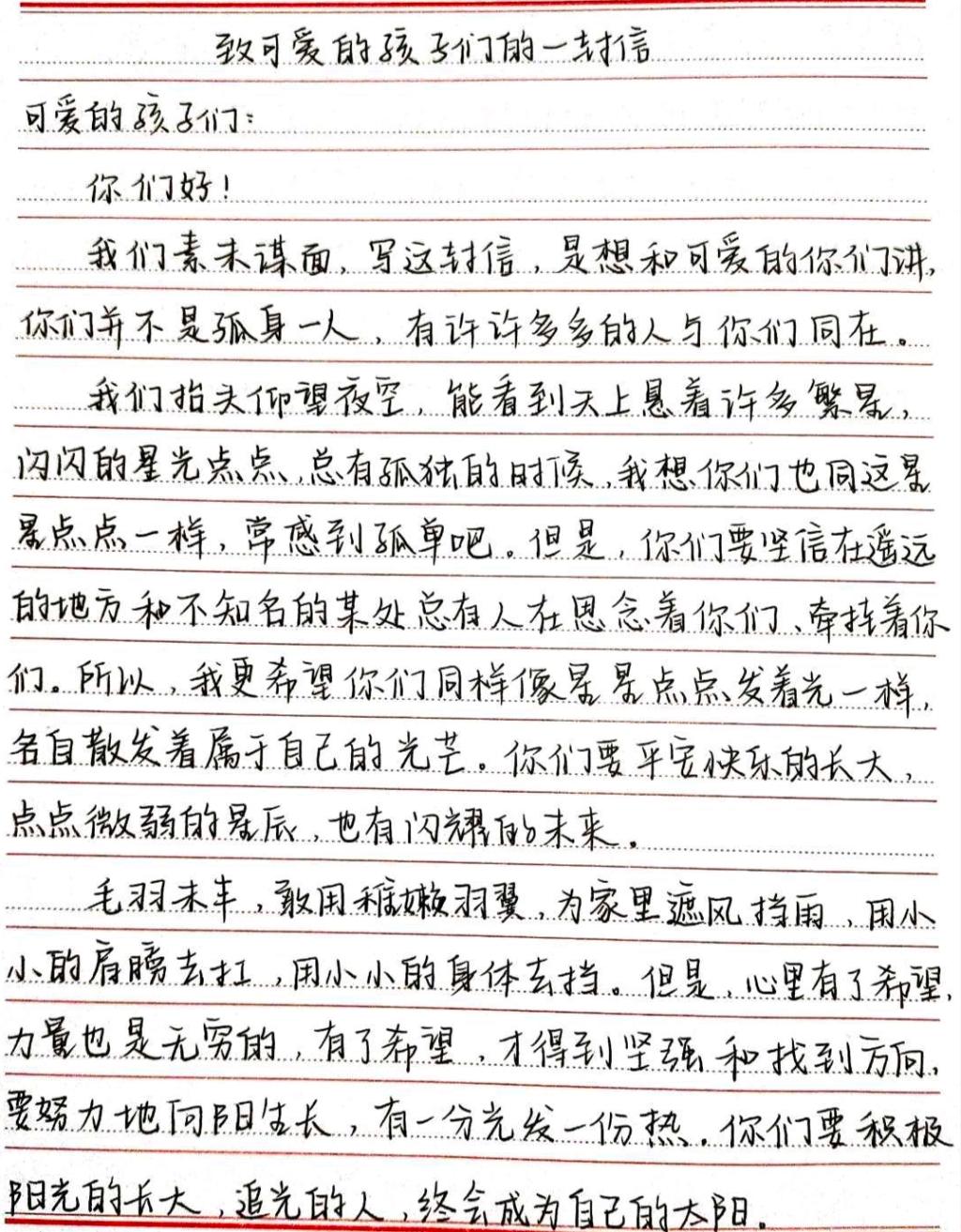 此次“青年执笔书星火,信笺载梦耀心光”志愿服务活动,不仅为特殊教育学校学生送去精神慰藉,也为青年学子在实践中践行五四精神搭建平台,为构建和谐社会贡献了春力量,展现新时代青年的风采与担当。(ok138cn太阳集团529 耿雨瞳 周寒雨/供稿 金天/审核)