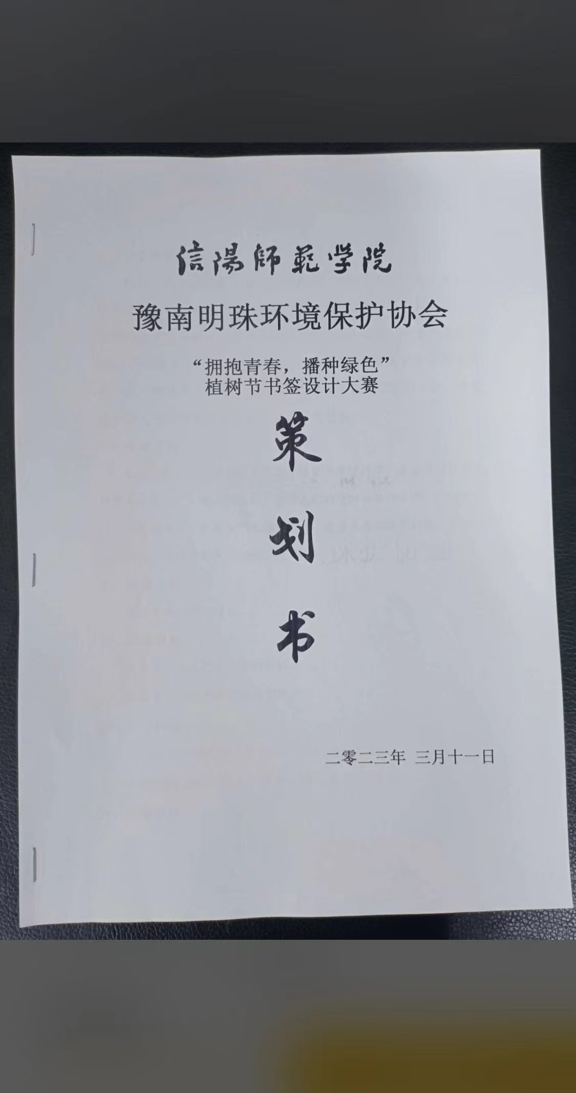 十年树木,百年树人。绿色是不变的话题,和谐是永恒的追求,为了提高同学们对绿色植物的认识和对环境的保护意识,增强其保护环境的责任感,促使其积极践行生态文明思想,3月16日—3月22日,豫南明珠环境保护协会特举办“拥抱青春,播种绿色”植树节书签设计活动。