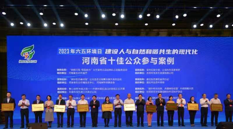 6月5日上午,2023年六五环境日河南省主场活动在郑州隆重举行,我院豫南明珠环境保护协会提交的“提升环保技能,共建绿色校园”环保技能大赛案例荣获“2023年河南省十佳公众参与案例”,是全省教育系统唯一获奖案例。