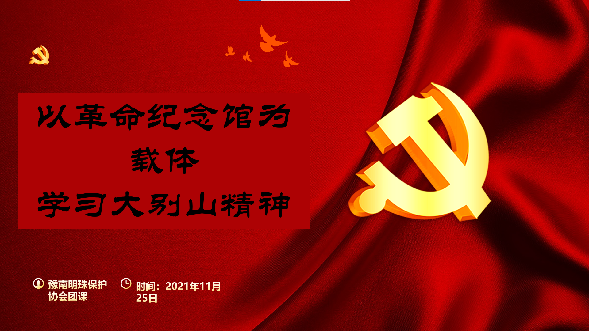 大别山精神作为红色革命精神的重要组成部分,激励着一代代中华儿女奋勇向前。为使社员们在新时代的背景下更好地继承和弘扬大别山精神,11月25日晚,豫南明珠环境保护协会在腾讯会议网络平台开展“红旗不倒·火种绵延”主题团课。全体社员参加本次团课。团课由团支书徐铬主持。