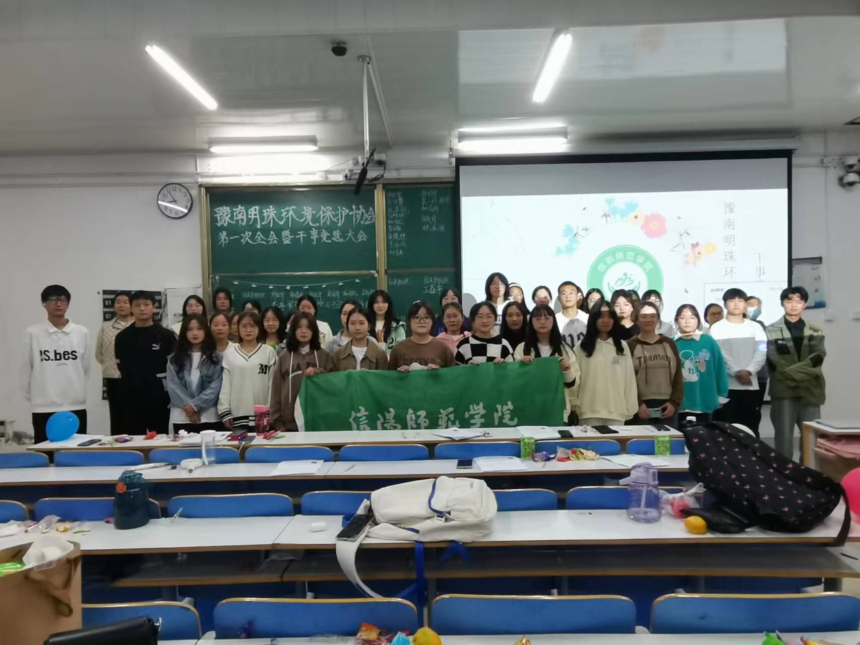 10月22日晚,豫南明珠环境保护协会在社科楼514教室举办2022-2023学年第一次全体会议暨干事竞选大会。学生会分管主席刁丹阳、前任会长夏岩、前任团支书徐铬、现任会长路艳欣、现任团支书陈晓璐,社团各部门部长及社团全体成员参加此次会议。