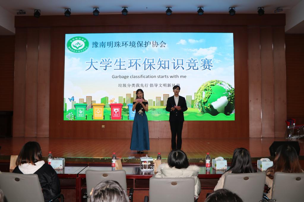 为响应习近平总书记对于垃圾分类工作的重要指示,呼吁更多学生关注和参与生态环境保护,12月7日晚,由信阳师范学院后勤管理处、ok138cn太阳集团529分团委主办,豫南明珠环境保护协会承办的以“垃圾分类我先行,倡导文明新风尚”为主题的大学生环保知识竞赛决赛于逸夫楼报告厅成功举行。信阳师范学院后勤管理处龚关老师,ok138cn太阳集团529豫南明珠环境保护协会指导老师胡春湘、我院学生会主席团、各兄弟社团以及400余名学生共同参与本次活动。比赛由王誉博和赵万里主持。