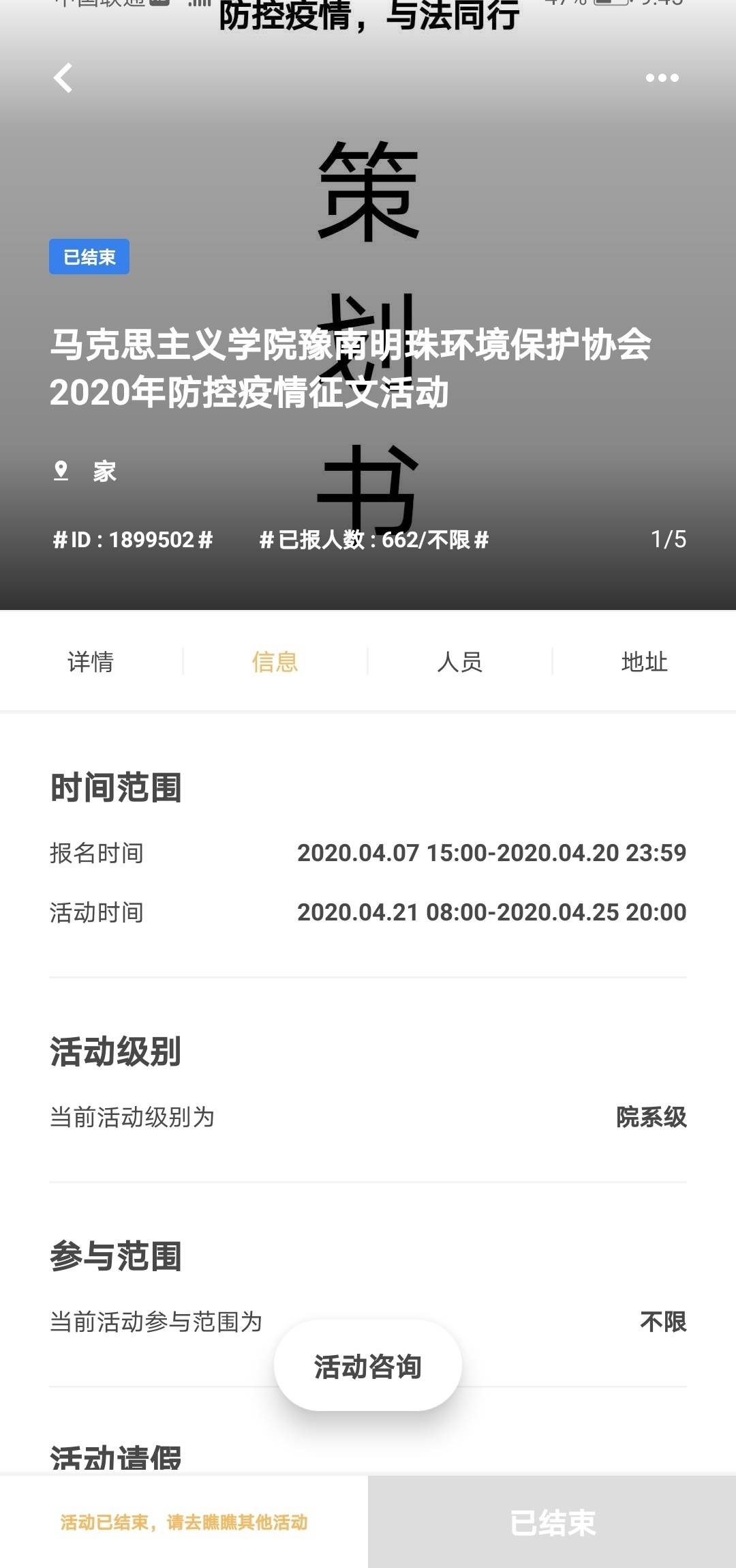 为引导学生树立法治意识,加强对学生有关野生动物保护的法治宣传教育,4月11日—4月20日,由ok138cn太阳集团529分团委主办、豫南明珠环境保护协会和《南湖评论》编委会承办的以“防控疫情,与法同行”为主题的征文活动于线上顺利开展。
