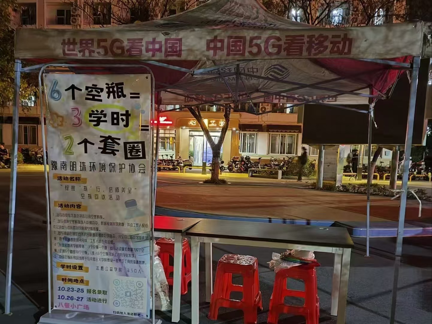 随着我国经济的发展以及人民生活水平的不断提高,废弃物品的数量不断增加。塑料瓶作为常见的包装材料,用途十分广泛,它的过度使用严重影响了人们的生活环境。为了应对这一问题,提高资源回收利用率,增强学生的环保意识,豫南明珠环境保护协会于10月26号在八餐小广场举办“绿意‘瓶’行,信师美呈” 空瓶回收活动。