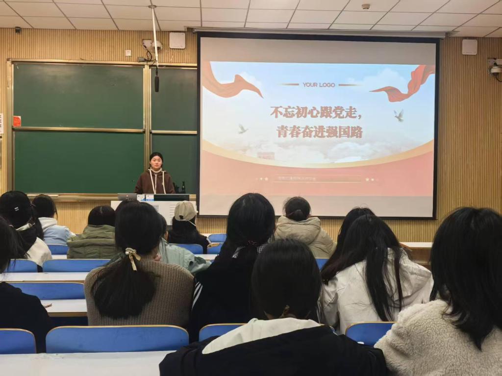 本次团课由团支书马倩主持。团课伊始,马倩先向社团成员们介绍了本次团课的主题,通过视频让社团成员简单地了解党的历史。然后,马倩结合具体案例解读了党的初心和使命的深刻内涵。接着,马倩强调了学习党的理论对青年一代的重要性,引起了社团成员的深刻思考。最后,马倩号召社团成员应从身边的小事做起,理论联系实际,在日常的学习生活中坚定不移地追随党的脚步。