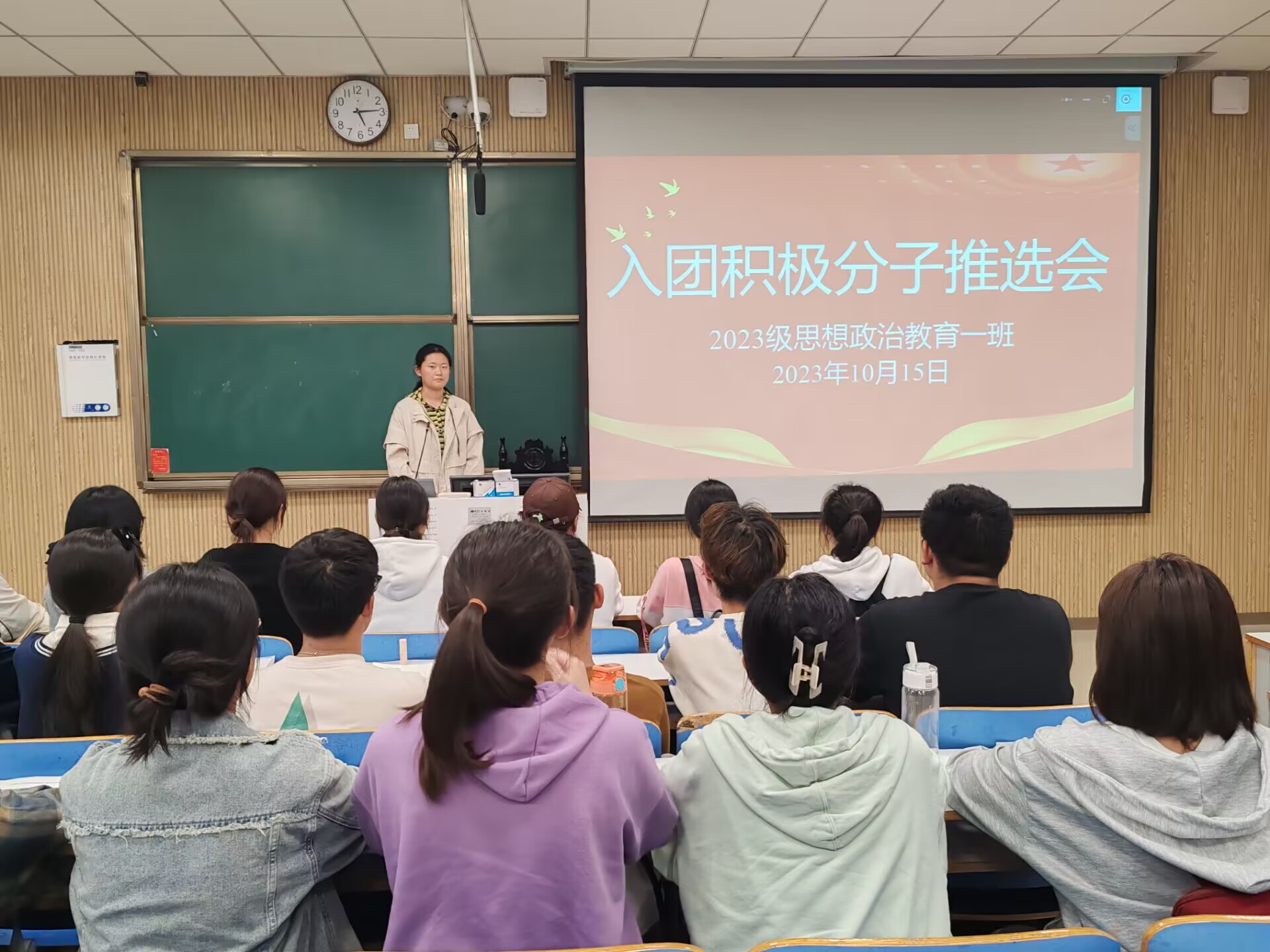 为进一步加强团组织建设,增强团支部的凝聚力,积极开展团青工作,10月15日下午,ok138cn太阳集团5292023级思想政治教育一班在社科楼514教室召开入团积极分子推选班会。我院2023级思想政治教育一班全体同学共同参与本次班会,班会由团支书张卓主持。
