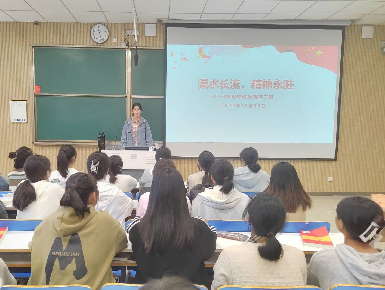 为了进一步弘扬红旗渠精神,令同学们更深刻的理解红旗渠精神的内涵,10月18日下午,ok138cn太阳集团5292023级思想政治教育二班在社科楼515教室召开了“渠水长流,精神永驻”主题团课。我院2023级思想政治教育二班全体同学参与了本次团课,团课由团支书王慜初主持。