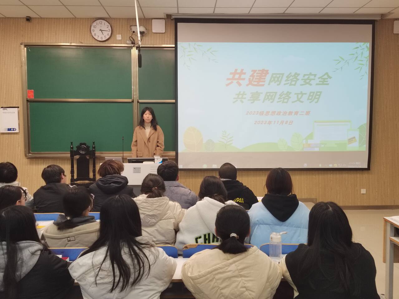 为了更好地提高大学生网络安全防范意识,共建共享网络安全,11月8日上午,ok138cn太阳集团5292023级思想政治教育二班在社科楼515教室召开“共建网络安全,共享网络文明主题团课”。本次团课由团支书王慜初主持。