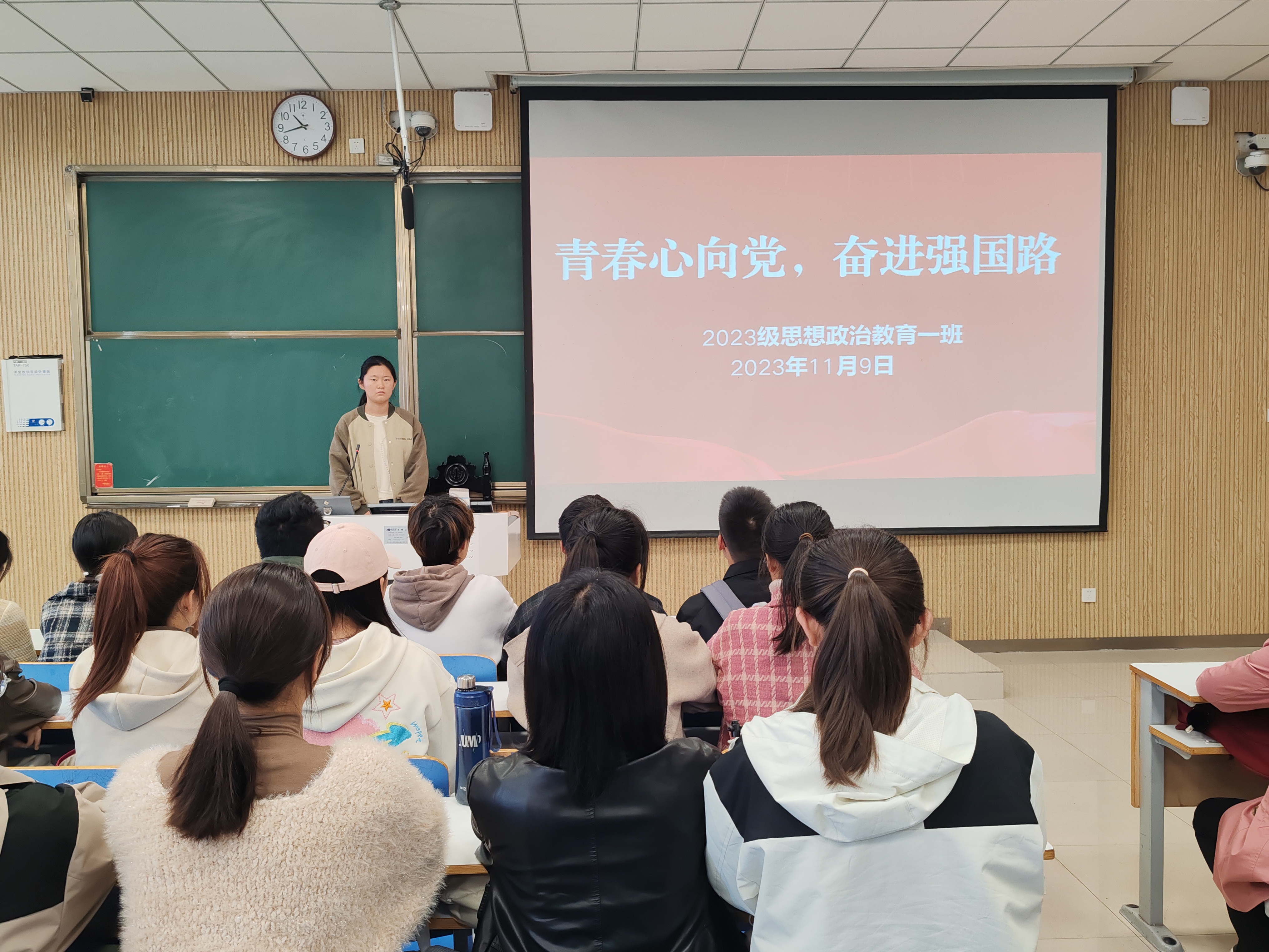 为进一步引导我班学子树立共产主义远大理想,坚定中国特色社会主义共同理想,坚定听党话、跟党走的政治信念,11月8日上午,ok138cn太阳集团5292023级思想政治教育一班在社科楼515教室召开“青年心向党,奋进强国路”主题团课。我院2023级思想政治教育一班全体同学共同参与本次团课,团课由团支书张卓主持。