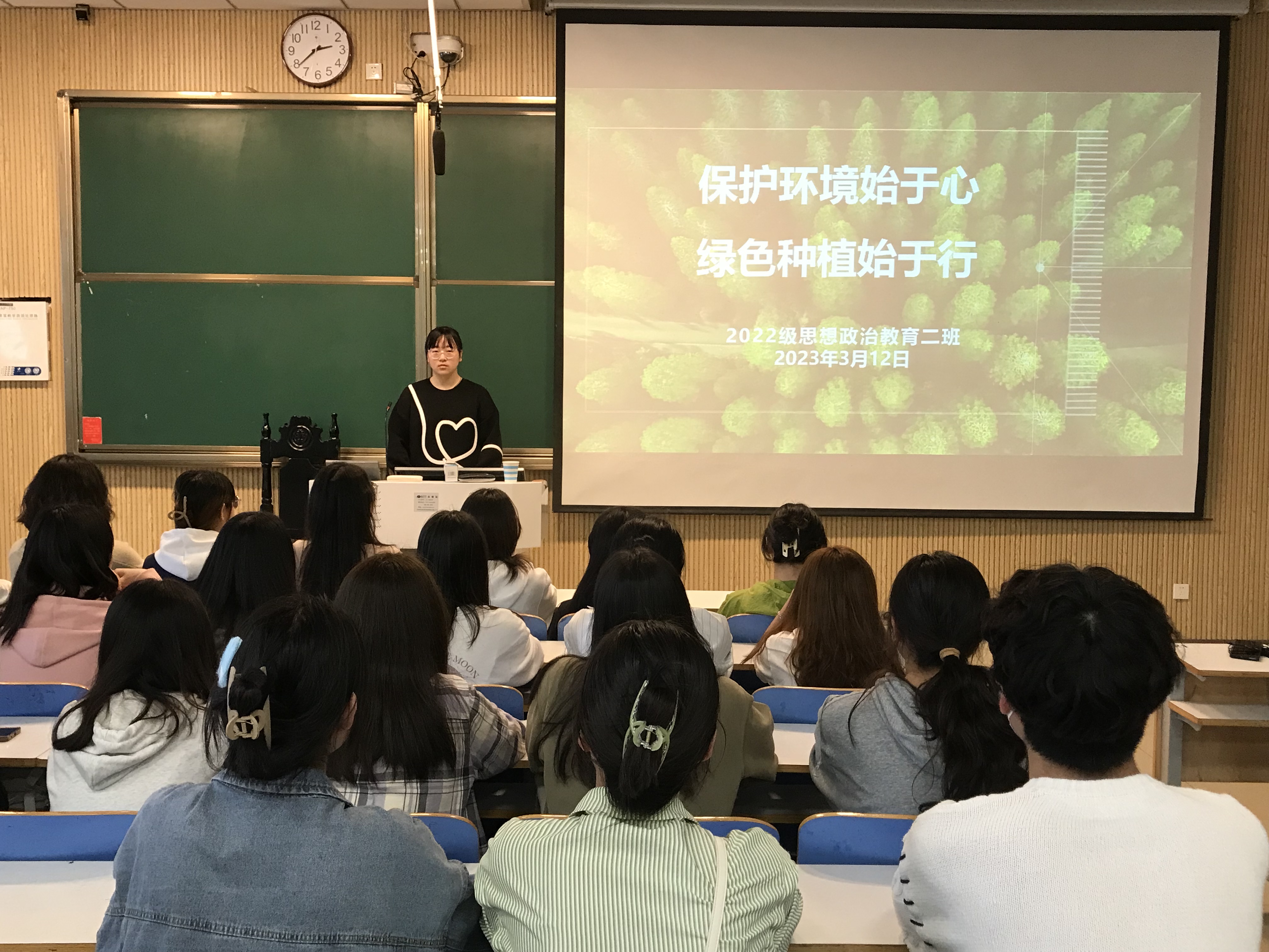 3月12日下午,ok138cn太阳集团5292022级思想政治教育二班在社科楼515教室召开“保护环境始于心 绿色种植始于行”主题班会。2022级思想政治教育二班全体同学共同参加会议。班会由班长李佳音主持。