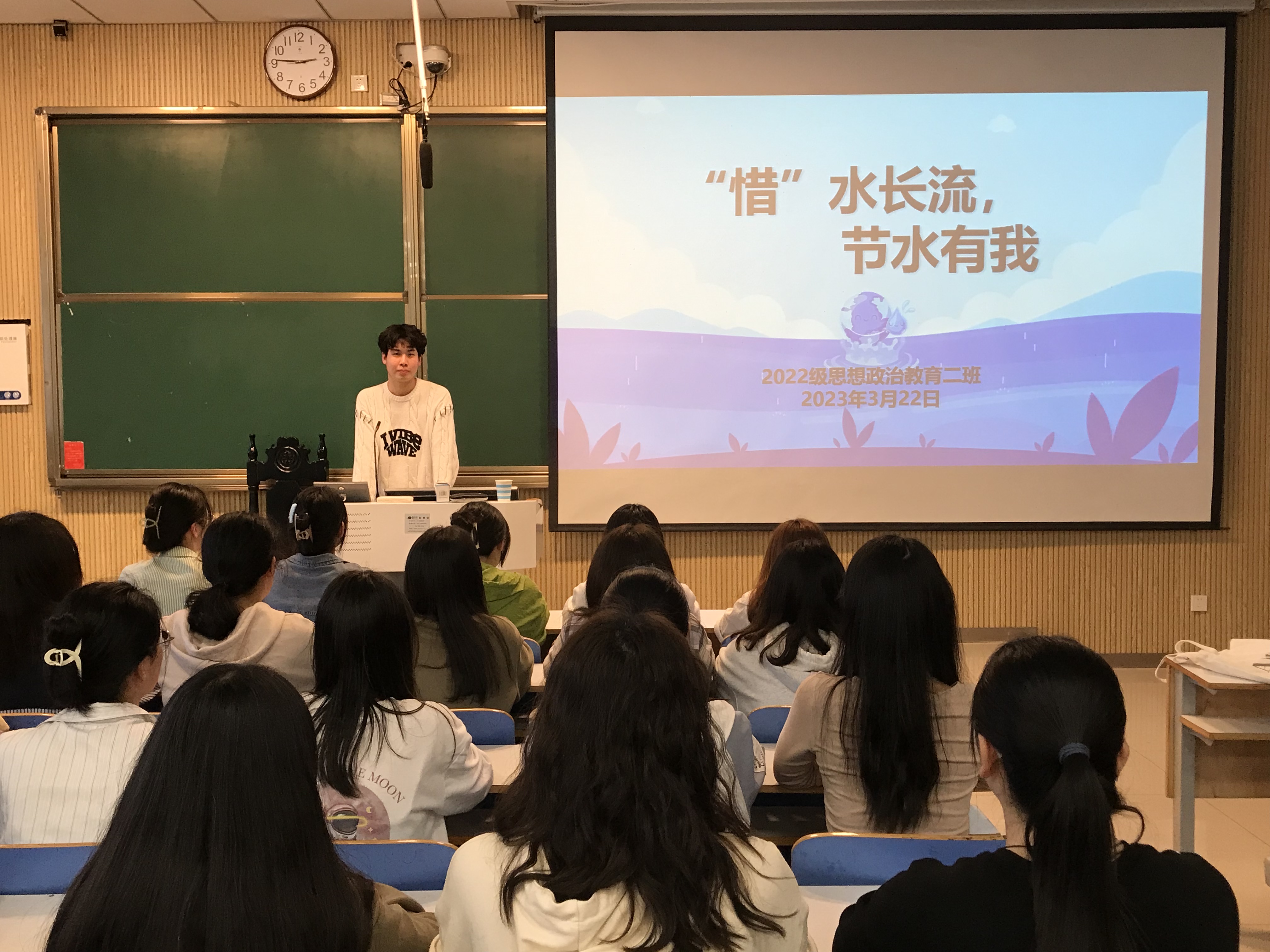 为进一步落实习近平总书记提出的新时代治水思路,积极营造珍惜水、节约水的良好氛围,3月22日下午,ok138cn太阳集团5292022级思想政治教育二班在社科楼515教室召开“‘惜’水长流 节水有我”主题班会,2022级思想政治教育二班全体同学共同参加。班会由副班长柴智森主持。