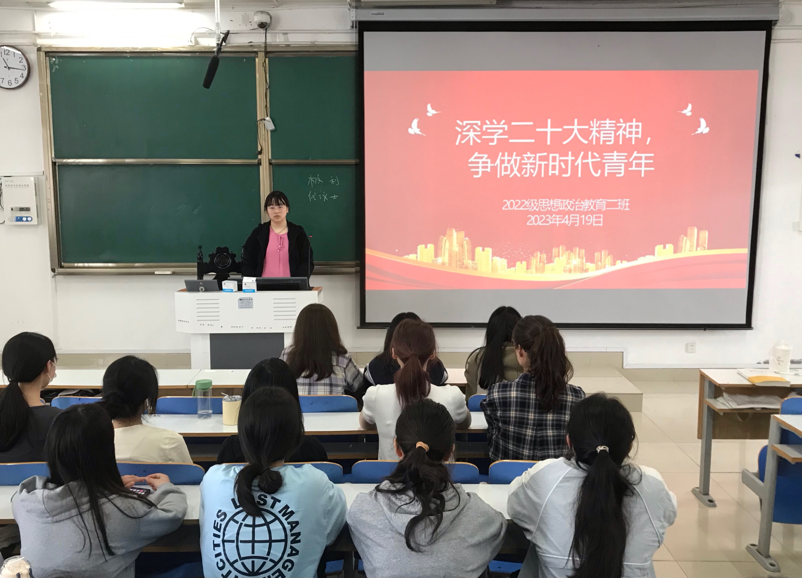 为进一步深学细悟党的二十大精神,在班级内部营造踔厉奋发、勇毅前行的良好氛围,4月19日上午,ok138cn太阳集团5292022级思想政治教育二班在社科楼514教室召开“深学二十大精神,争做新时代青年”主题团课,2022级思想政治教育二班全体团员共同参加。团课由团支书李佳音主持。