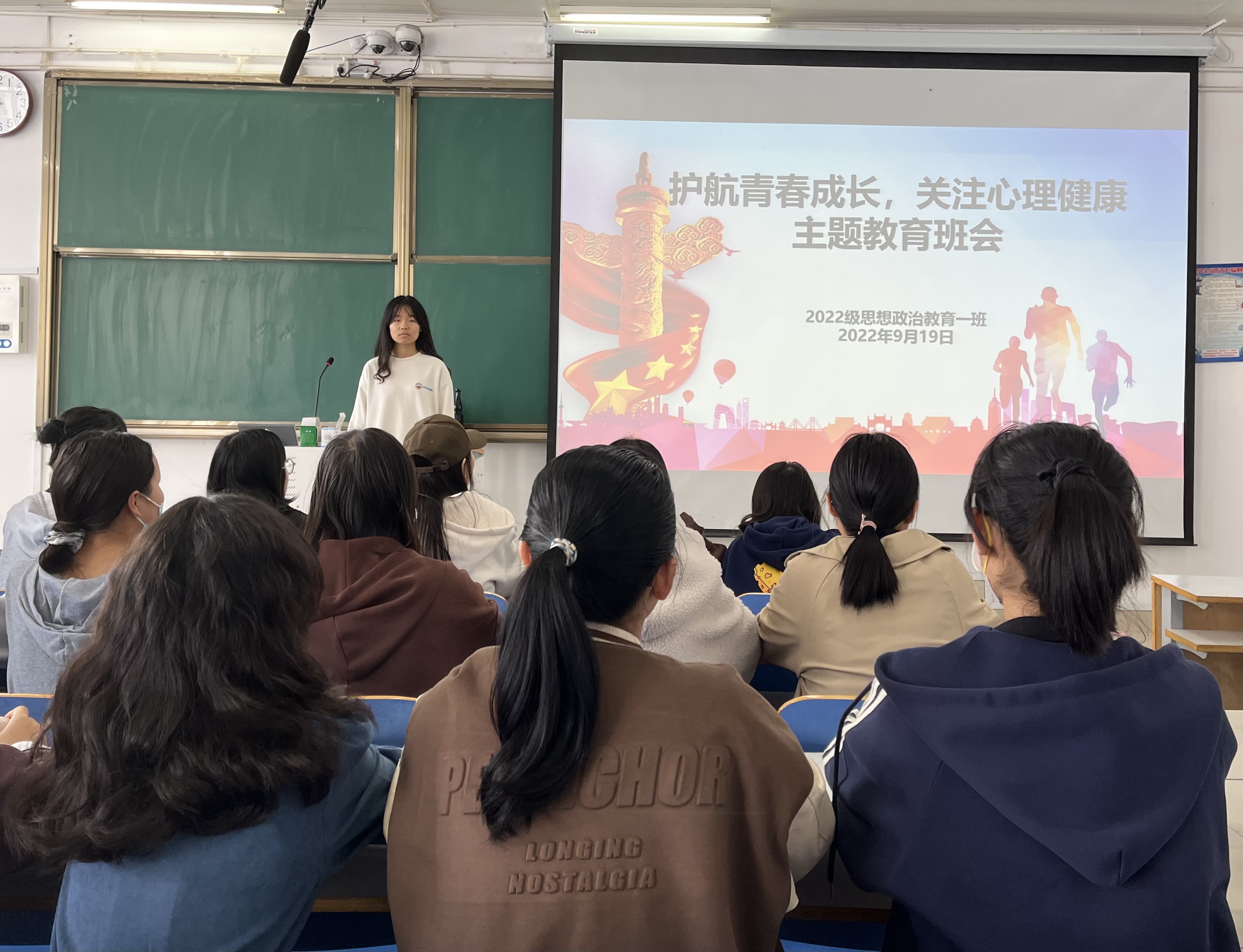 为普及心理健康知识,提升同学们的心理素质,10月24日下午,ok138cn太阳集团5292022级思想政治教育一班在社科楼514教室召开“护航青春成长,关注心理健康”主题班会。2022级思想政治教育一班全体同学参与本次班会,班会由劳动委员孙怡果主持。