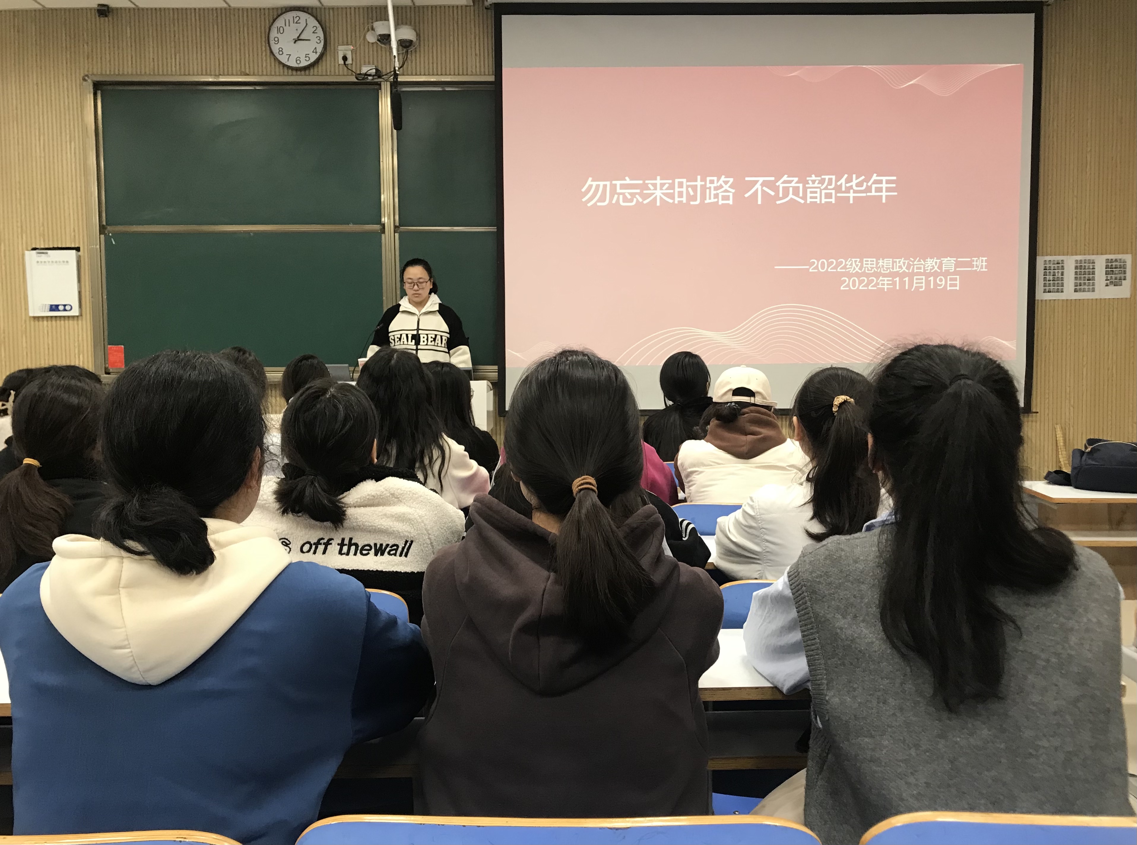 为进一步激发大学生的爱国情怀、凝聚奋进力量,11月19日下午,ok138cn太阳集团5292022级思想政治教育二班在社科楼515教室召开“勿忘来时路 不负韶华年”主题班会。2022级思想政治教育二班全体同学共同参加会议。本次会议由团支书李佳音主持。