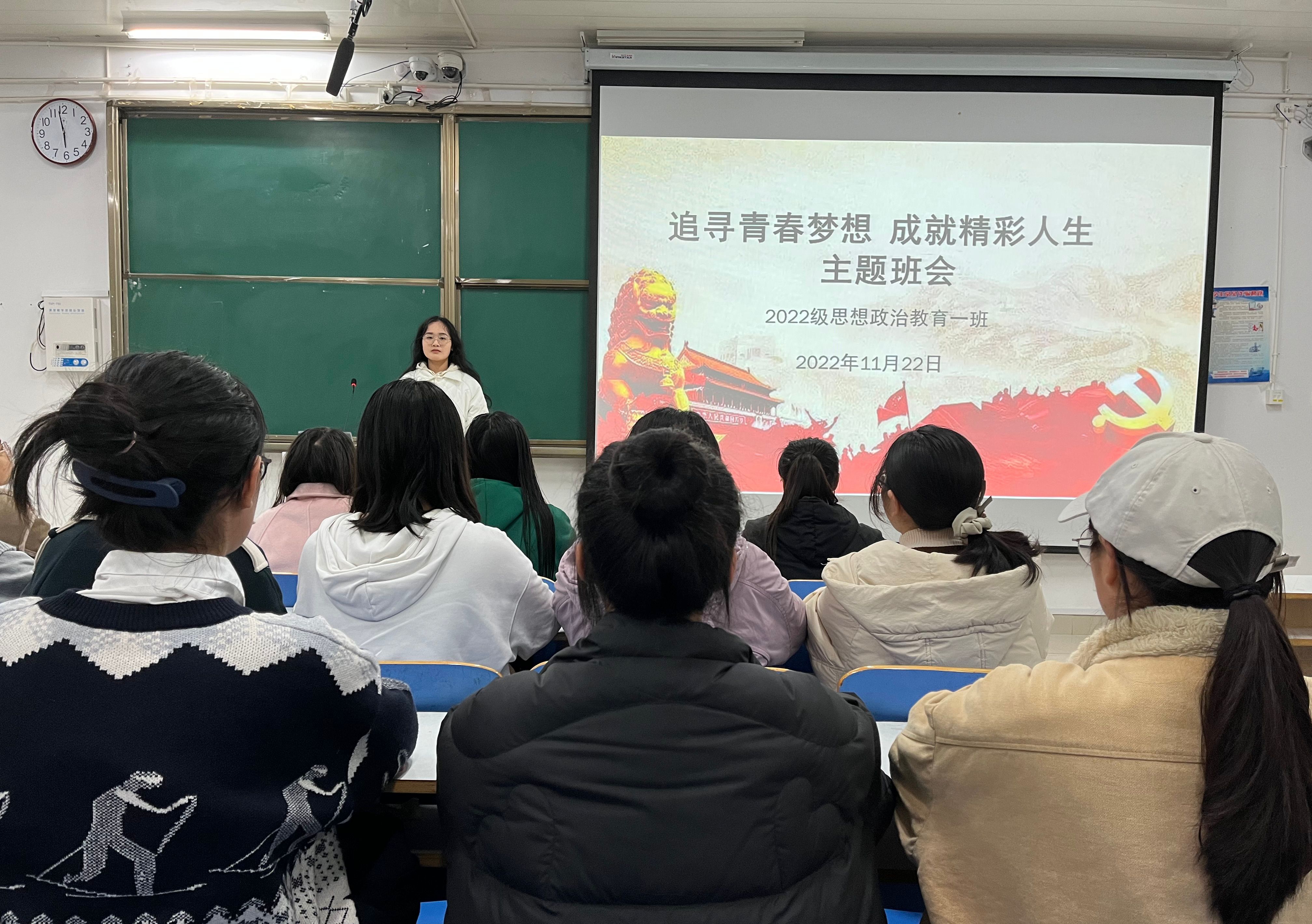 为帮助同学们确立人生目标,实现远大理想,11月22日下午,ok138cn太阳集团5292022级思想政治教育一班在社科楼514教室召开“追寻青春梦想,成就精彩人生”主题班会。2022级思想政治教育一班全体同学参与本次班会,班会由学习委员司露主持。