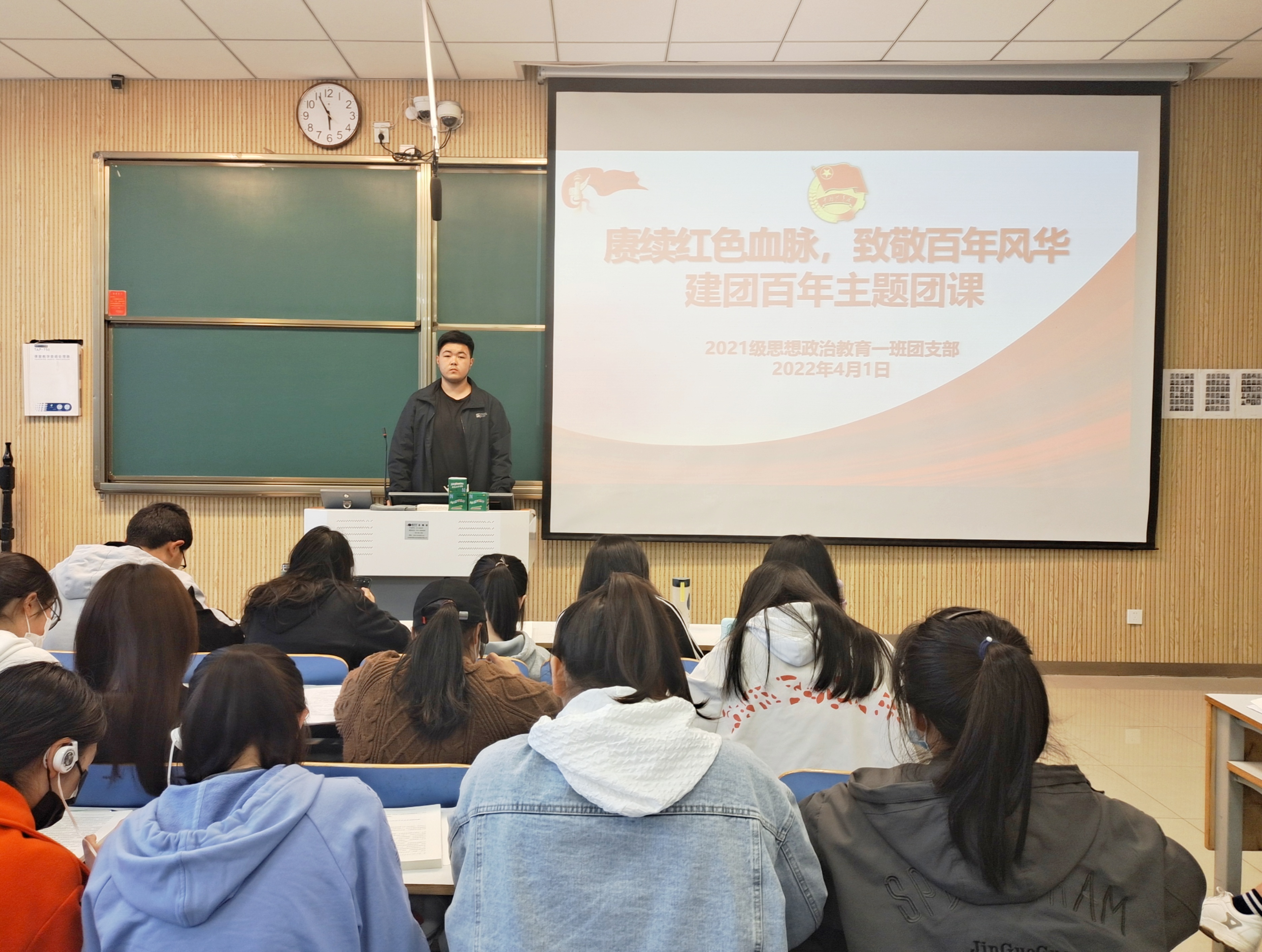 4月1日下午,ok138cn太阳集团5292021级思想政治教育一班在社科楼515召开“赓续红色血脉,致敬百年风华”建团百年主题团课。2021级思想政治教育一班全体团员共同参加了本次团课。团课由团支书戴翰林主持。
