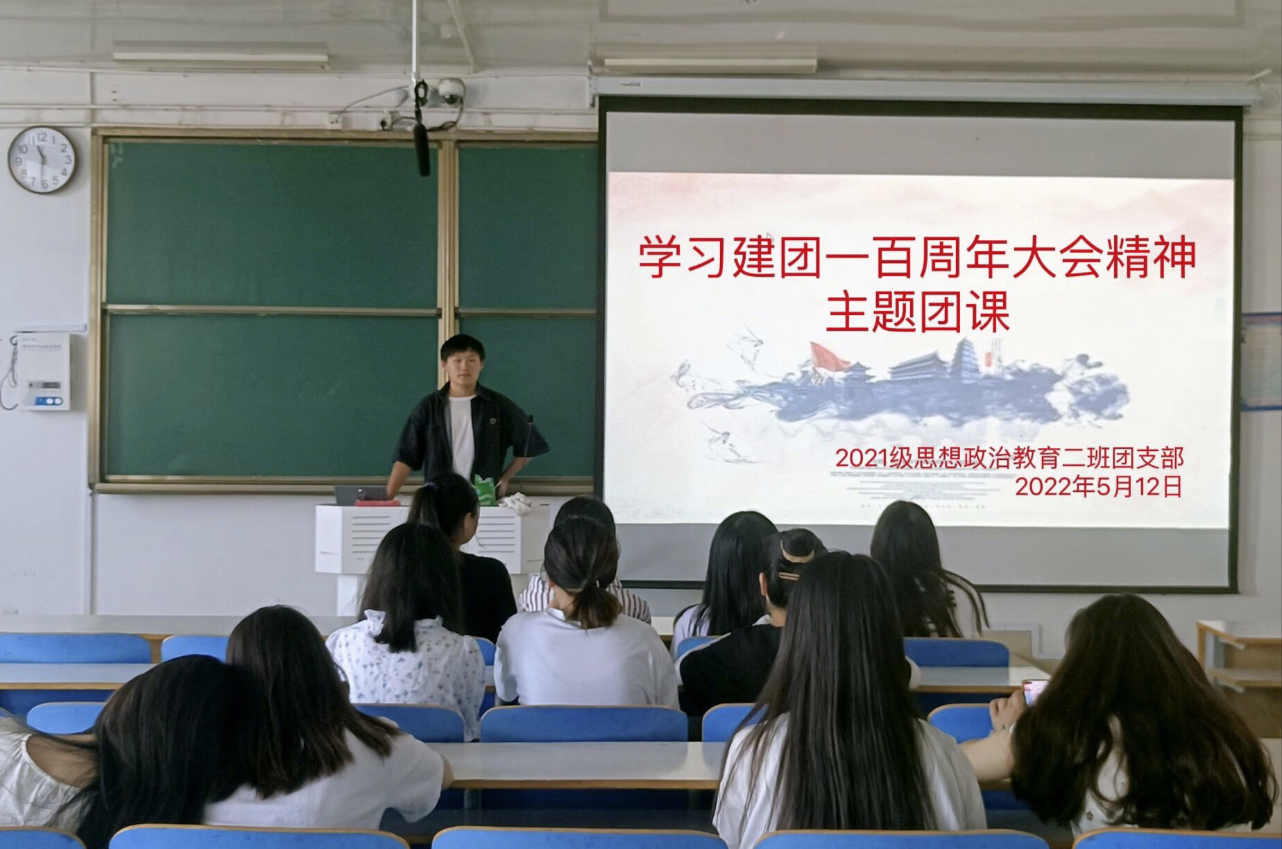 5月12日,ok138cn太阳集团5292021级思想政治教育二班在社科楼514教室召开学习建团一百周年大会精神主题团课。2021级思想政治教育二班全体团员参加此次团课。团课由团支书王婧欣主持。