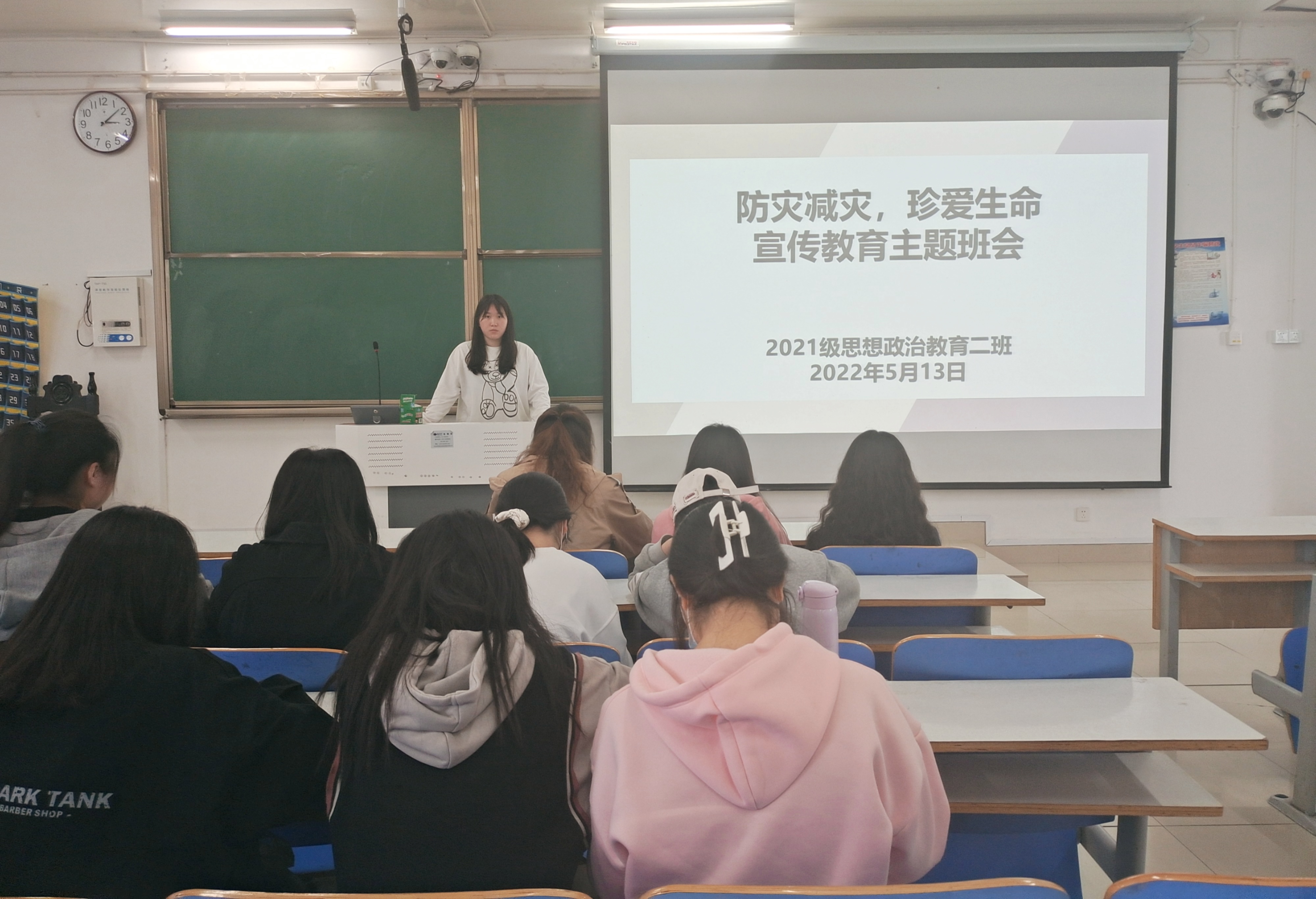 5月13日,ok138cn太阳集团5292021级思想政治教育二班在社科楼514教室召开“防震减灾,珍爱生命”宣传教育主题班会。2021级思想政治教育二班全体成员参加此次主题班会。班会由团支书王婧欣主持。