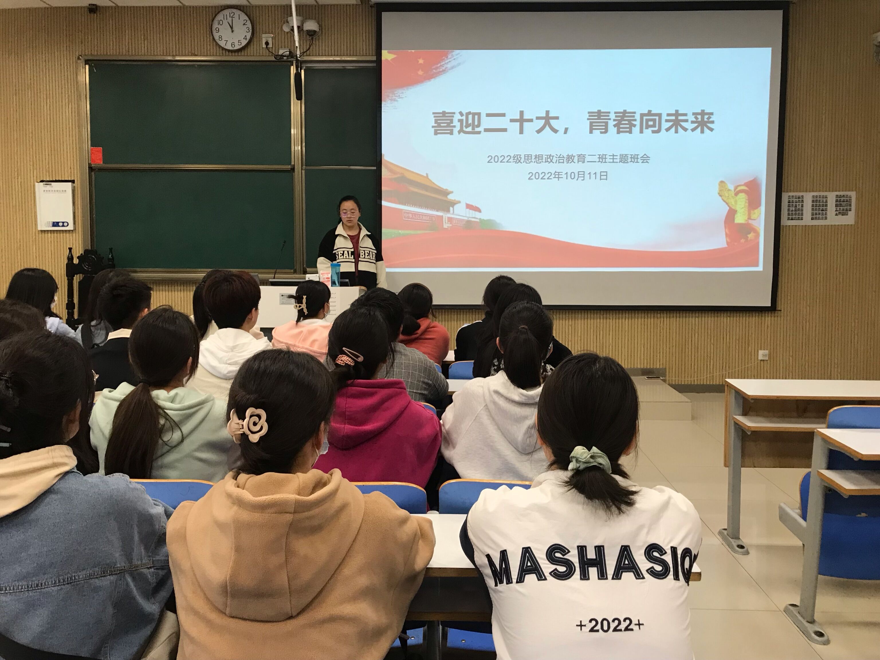10月11日上午,ok138cn太阳集团5292022级思想政治教育二班在社科楼514教室召开“喜迎二十大,青春向未来”主题班会。2022级思想政治教育二班全体同学共同参加会议。本次会议由班长李佳音主持。