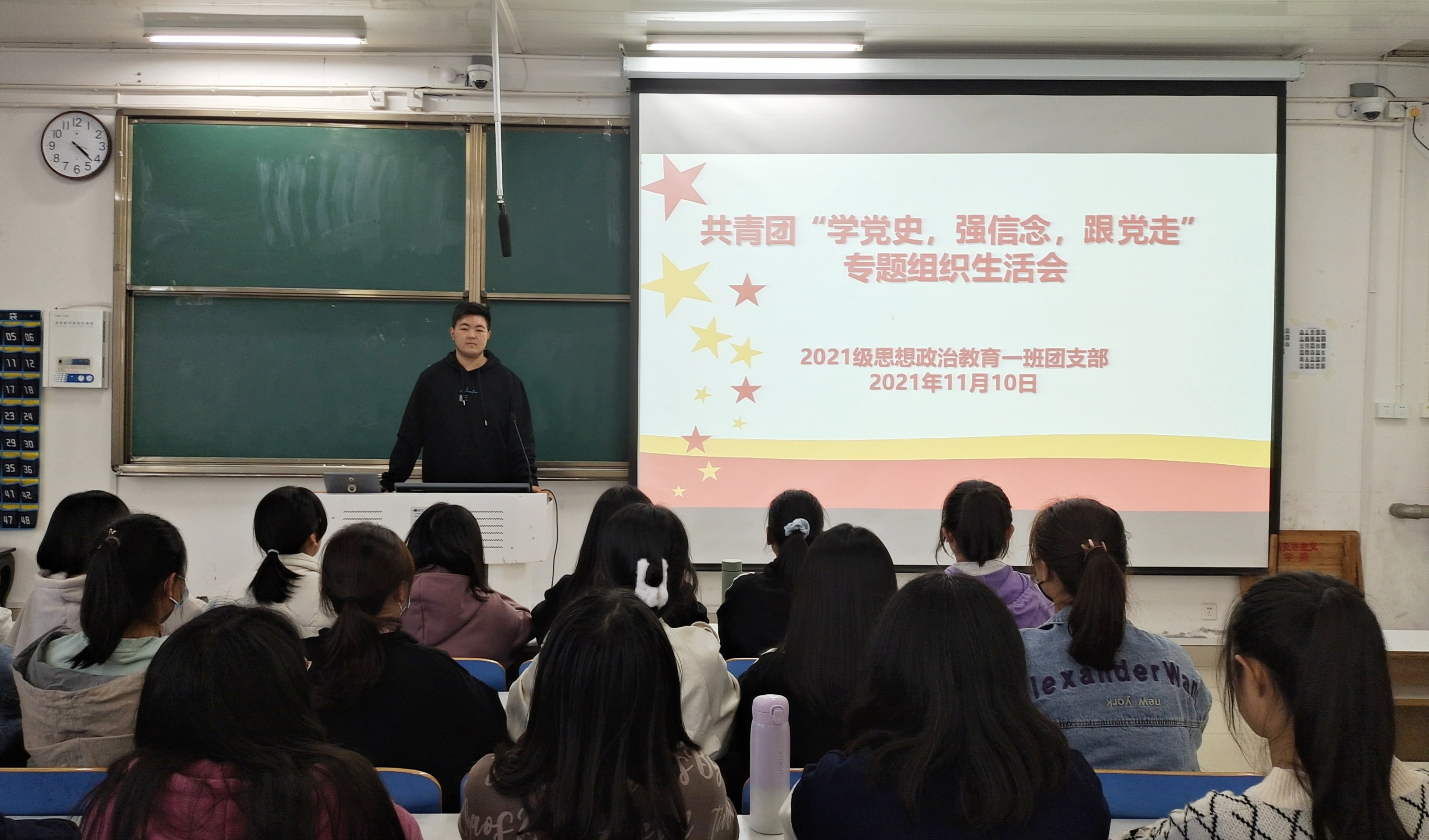 响应共青团“学党史、强信念、跟党走”的号召,11月10日下午,ok138cn太阳集团5292021级思想政治教育一班在社科楼516教室召开组织生活会。2021级思想政治教育一班全体成员参加了本次大会。会议由团支书戴翰林主持。