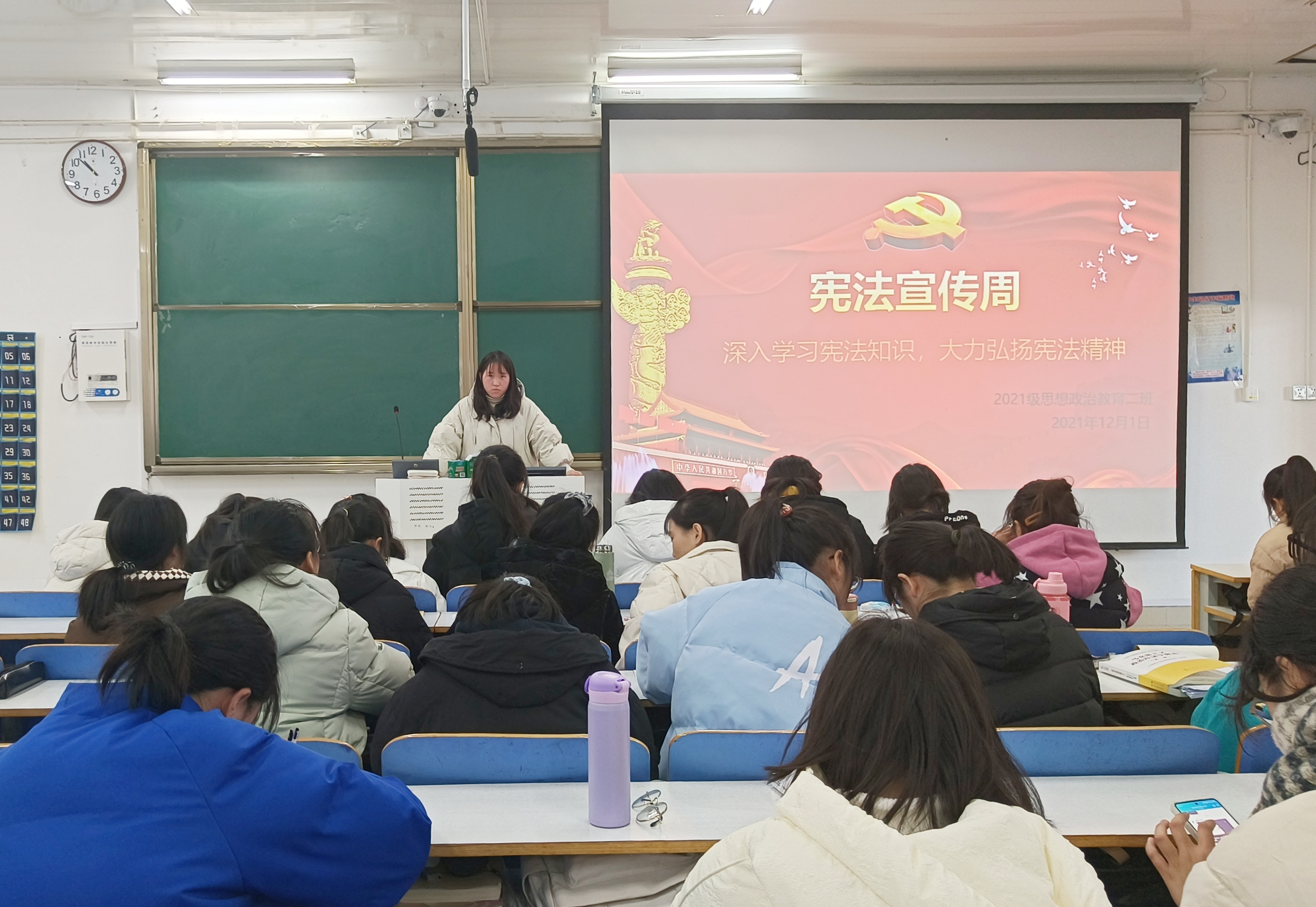 12月1日上午,ok138cn太阳集团5292021级思想政治教育二班宪法宣传周主题班会在社科楼514教室召开。2021级思想政治教育二班全体同学参加此次班会,班会由团支书王婧欣主持。