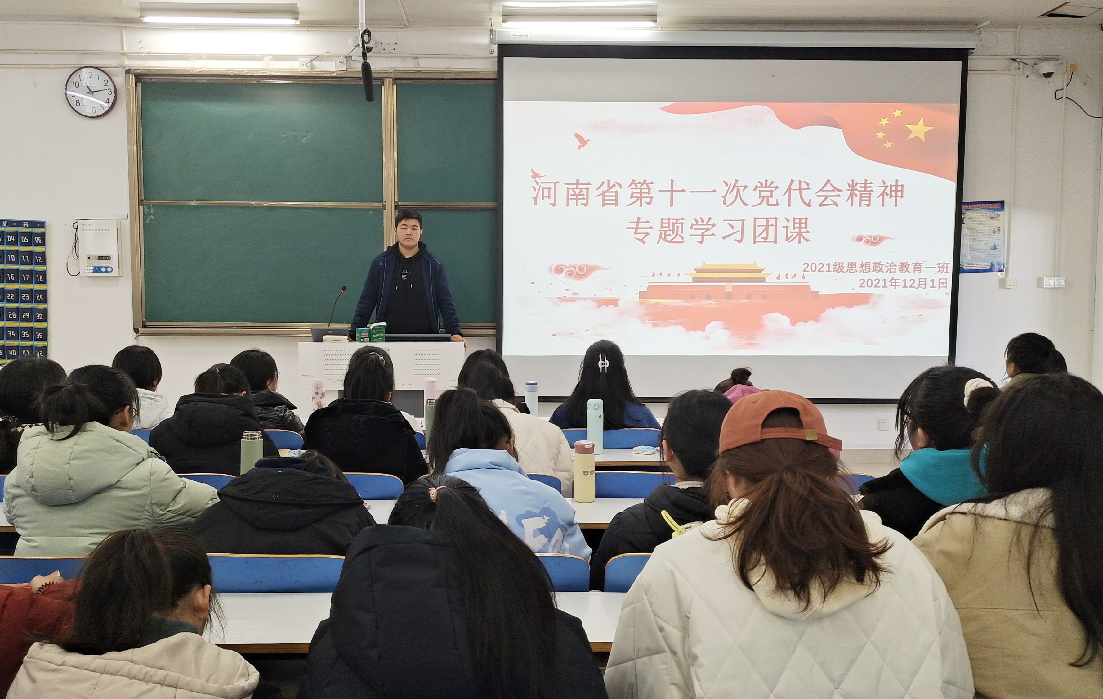 12月1日上午,ok138cn太阳集团5292021级思想政治教育一班在社科楼514教室召开河南省第十一次党代会精神专题学习团课。2021级思想政治教育一班全体团员参加本次团课。团课由团支书戴翰林主持。