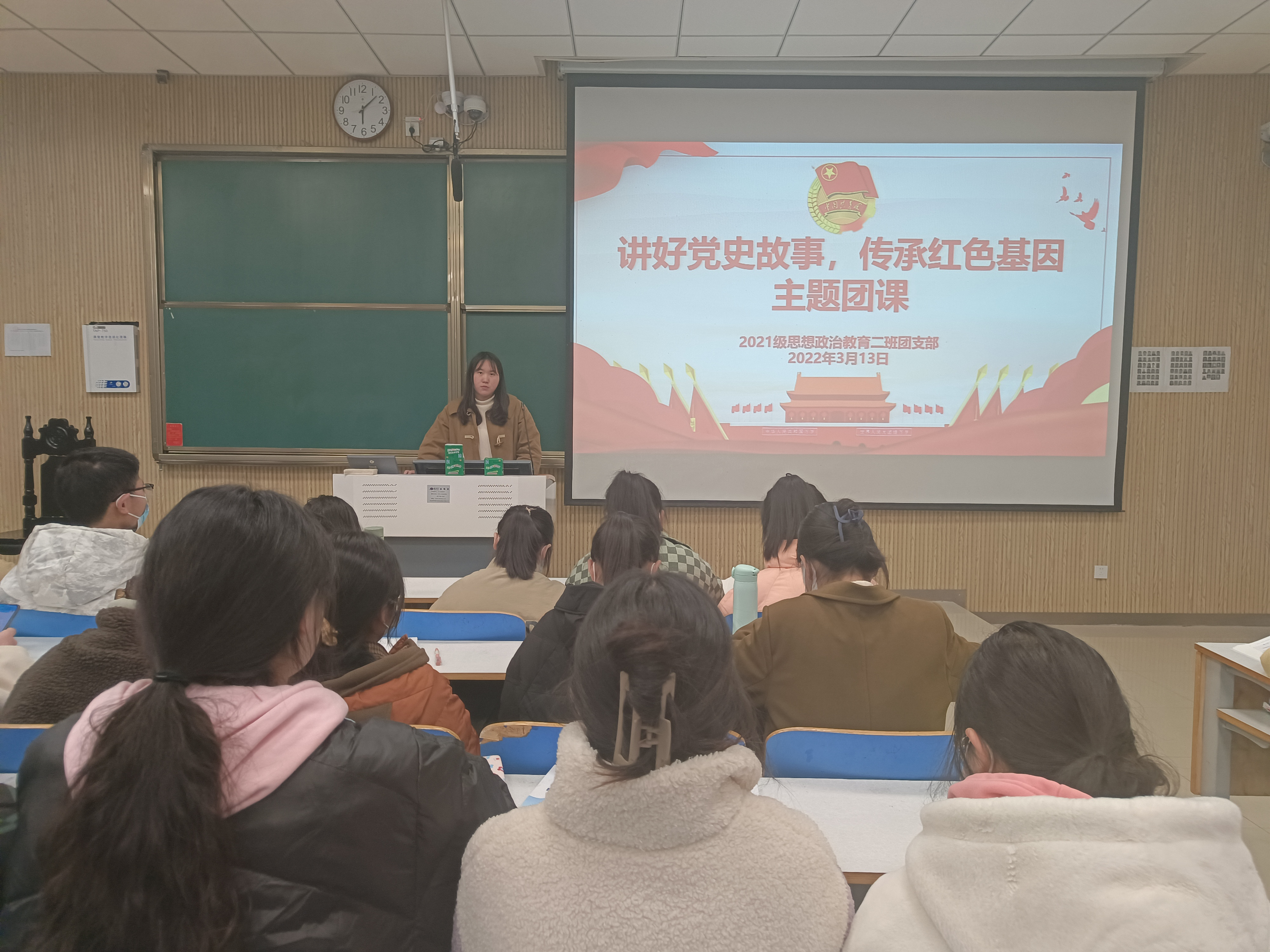 3月13日下午,ok138cn太阳集团5292021级思想政治教育二班在社科楼515教室召开“讲好党史故事,传承红色基因”主题团课。2021级思想政治教育二班全体团员参加此次团课,团课由团支书王婧欣主持。
