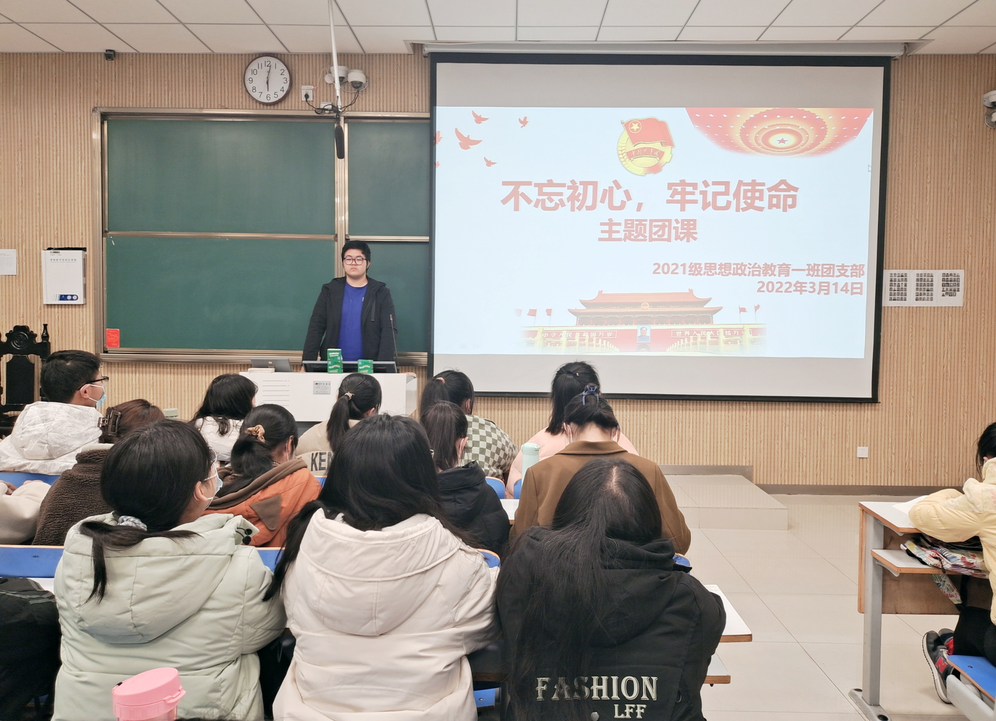 3月14日下午,ok138cn太阳集团5292021级思想政治教育一班在社科楼515开展“不忘初心,牢记使命”主题团课。2021级思想政治教育一班全体团员共同参加了本次会议。会议由团支书戴翰林主持。