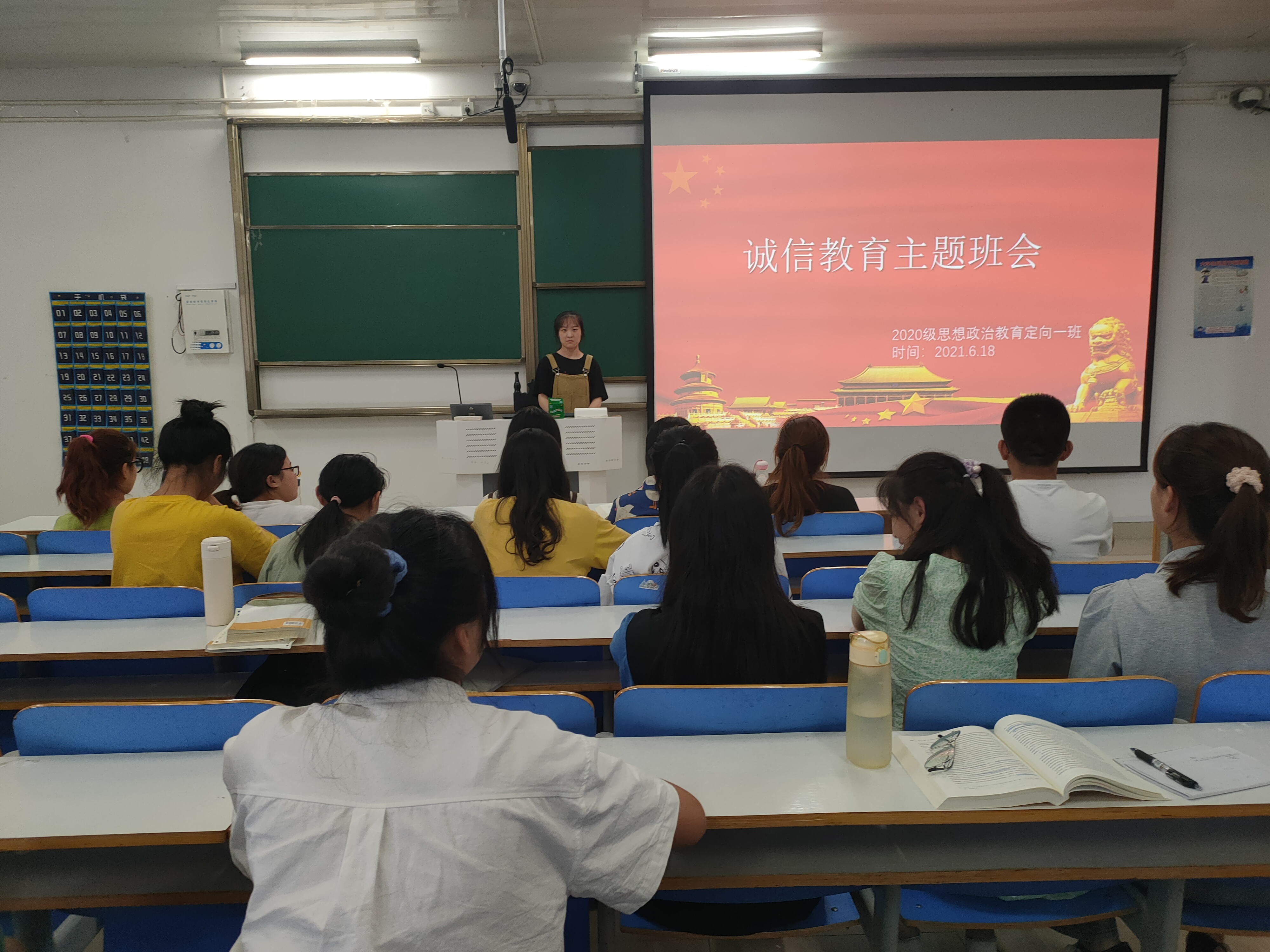 6月18日下午,ok138cn太阳集团5292020级思想政治教育(定向)一班在社科楼516召开诚信教育主题班会,ok138cn太阳集团529思想政治教育(定向)一班全体同学聆听了此次班会。